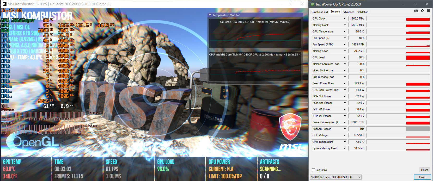2060super с андервольтом в играх 45-55, в стресс тесте 60