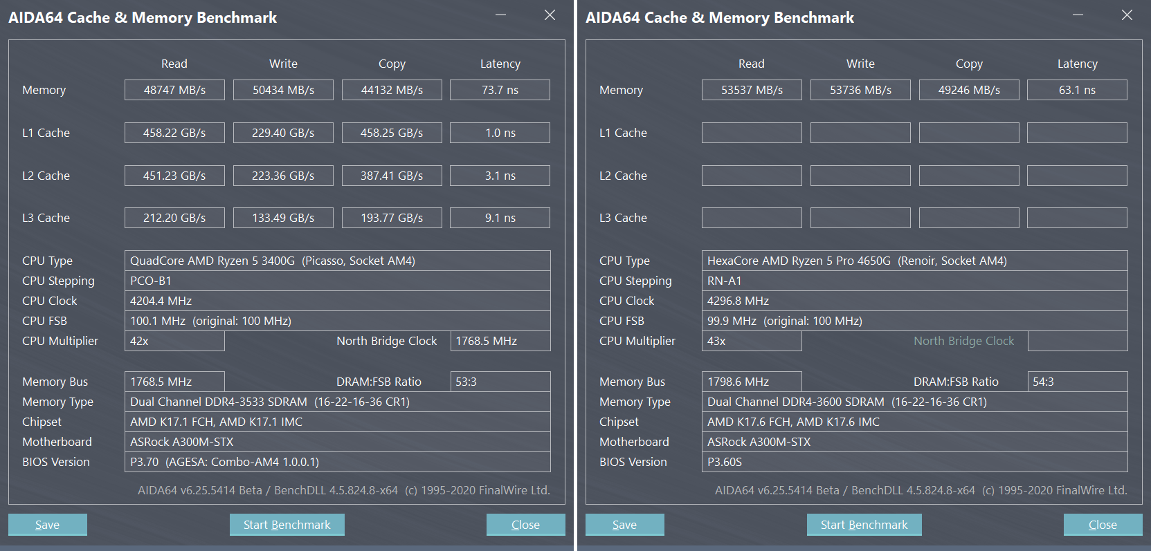 Ryzen 5 3400G VS Ryzen 5 4650G в тесте AIDA64