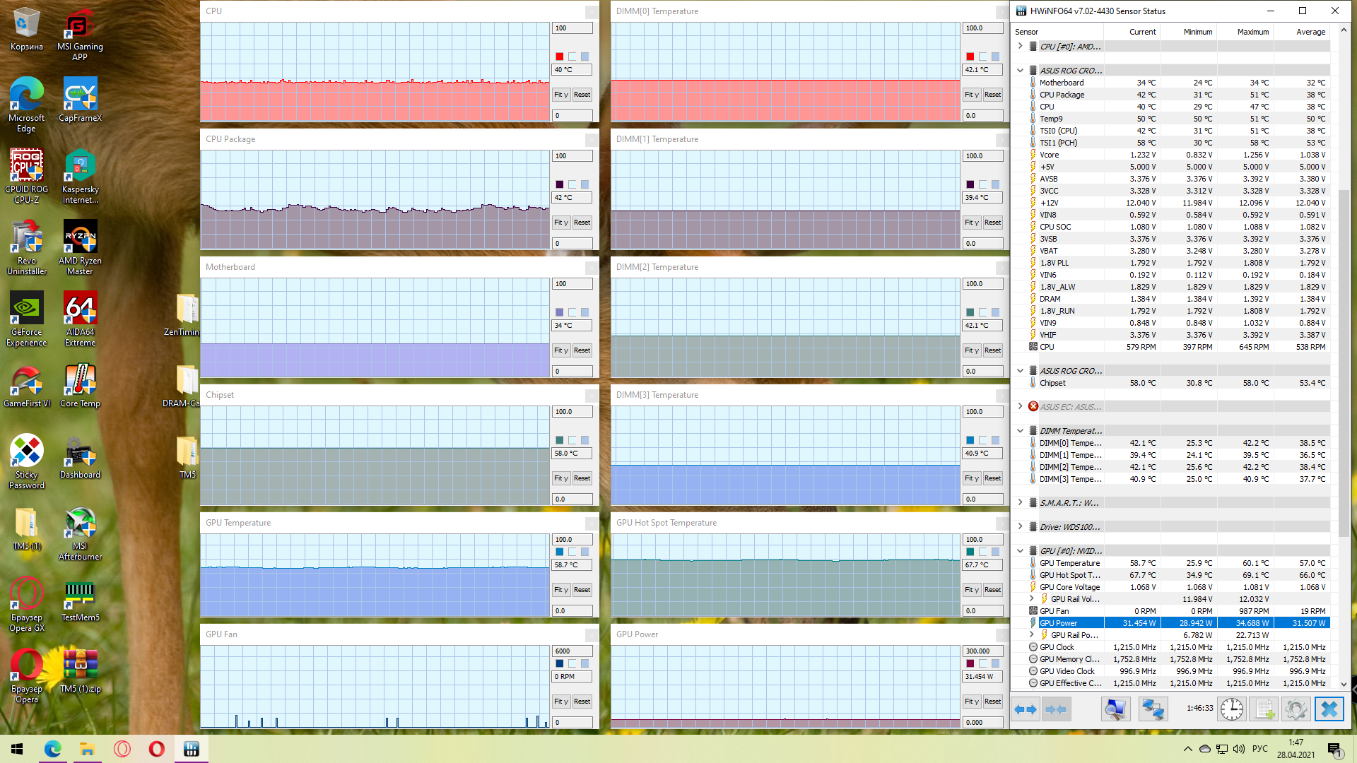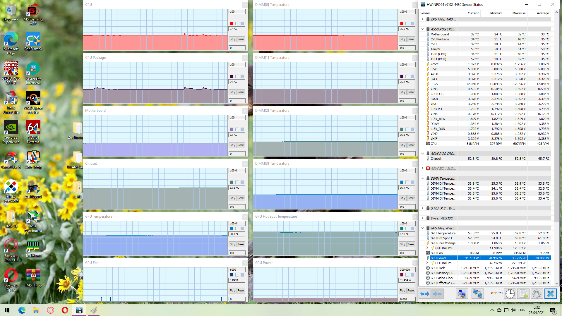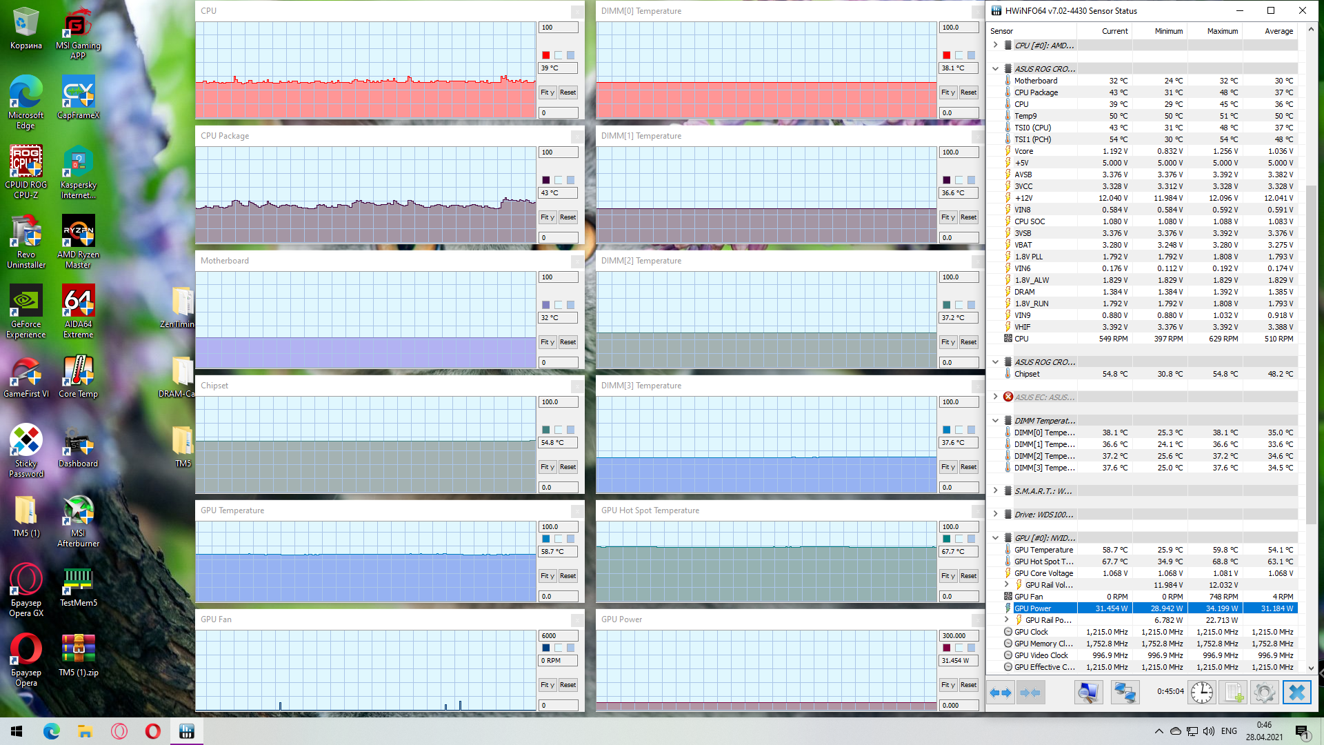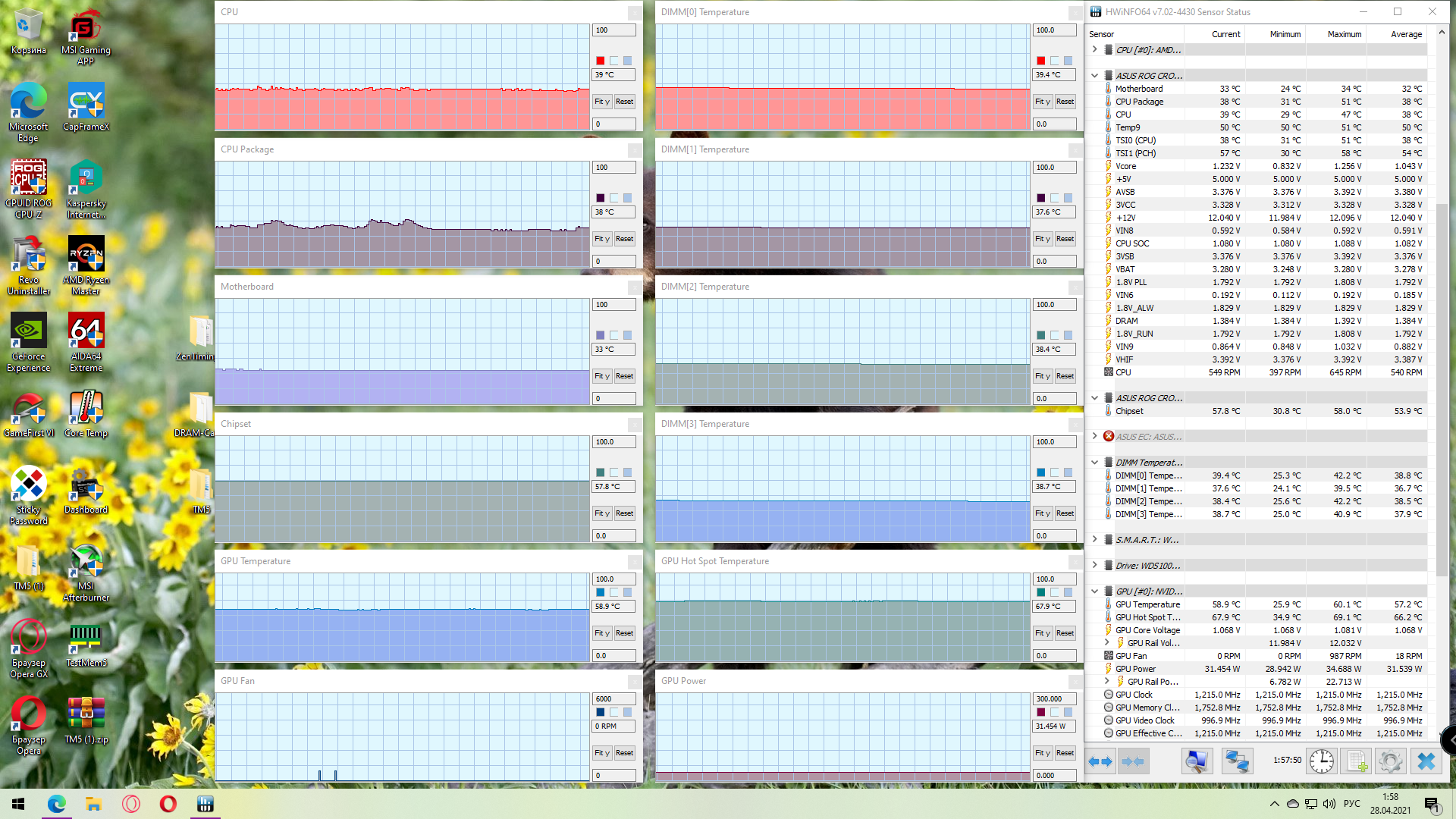 Добавлено спустя 55 минут 46 секунд: Итак, включаю систему в стоковой конфигурации Meshify 2. После запуска, кроме мониторинга ничего не трогаю. Через 5 минут делаю скриншот, обратите внимание на график температуры чипсета, расположенный над графиком GPU.