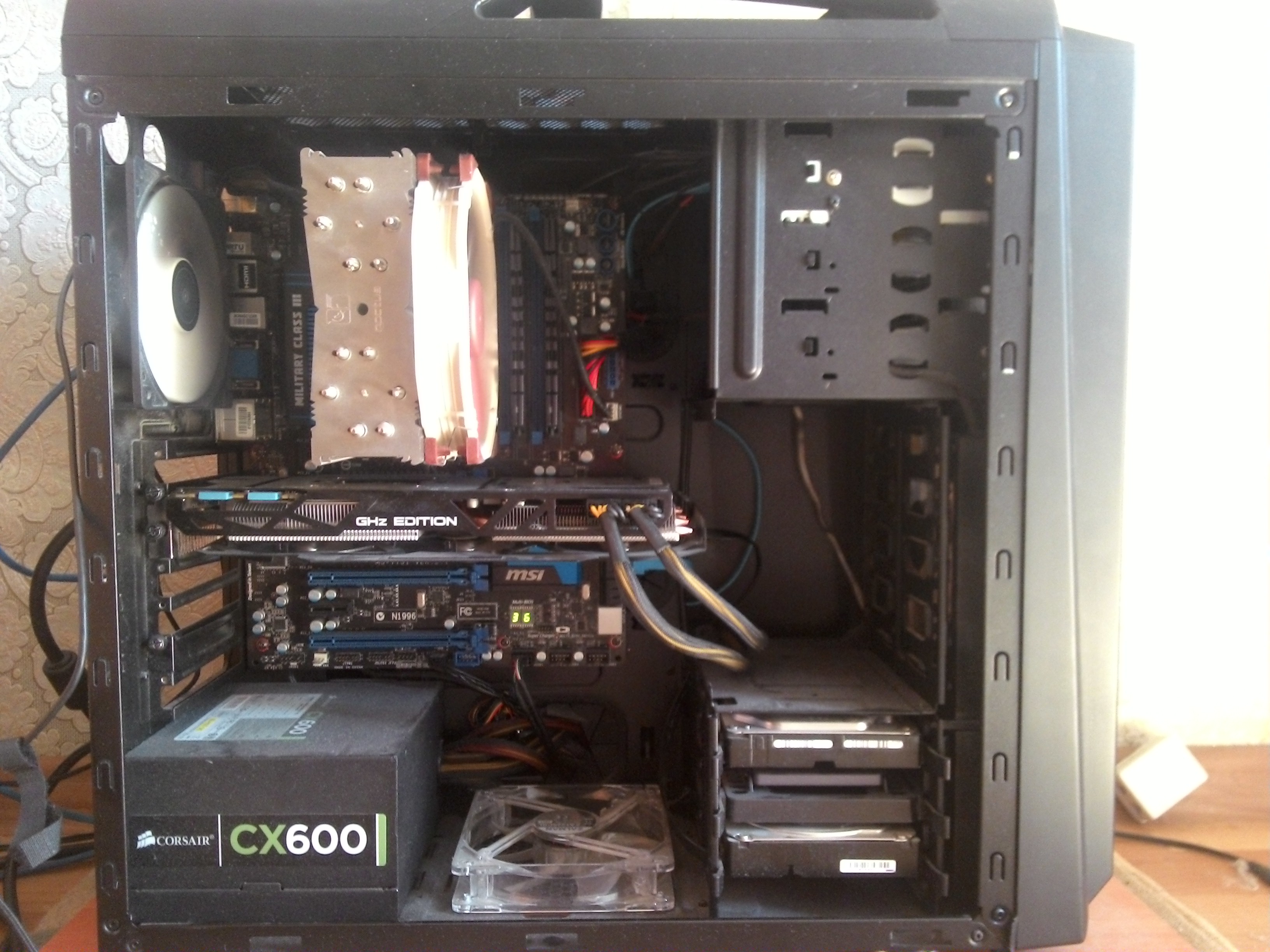Спасибо за таблицу, поменял домик для профильной системы с HAF 912 на Cooler Master MasterBox NR600. Хватило места под все накопители и даже осталось еще на несколько. Влезла башня Thermalright Macho Rev.A, да и в целом, ввиду большого количества свободного места, в современной планировке корпуса, собирать было приятнее и быстрее. Единственно, что родные вертушки в топку сразу, взял пока 4 120 (3 вдув и 1 выдув) и 2 140 (верхний выдув) от ID-Cooling, нашел дешевые гидродинамические на 4 pin. Потом, по возможности, поменяю на что-то поприличнее. В целом, в тихом режиме без нагрузки стало чуть-чуть погромче, чем было, зато появилась какая-никакая продуваемость.
