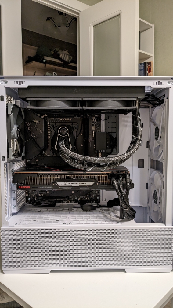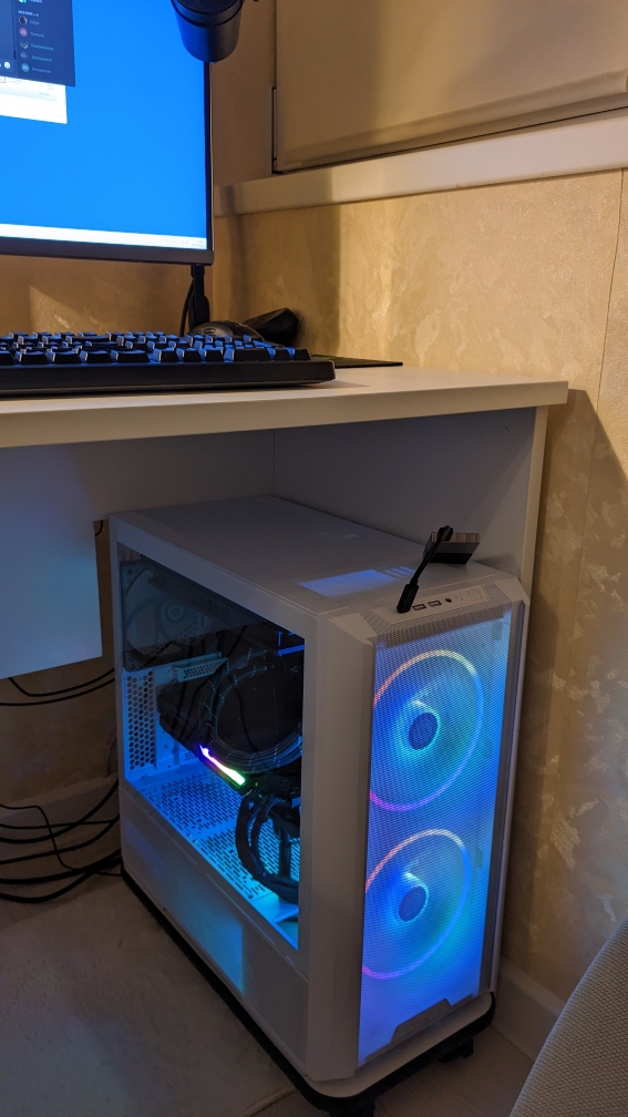 В общем, после своих стенаний в теме общей по СВО, отпишу тут по Lancool III. Для нормального кастома с внутренним 420 радом корпус НЕ приспособлен, слишком мал, смотрите модели больше размером, в высоту точно больше. Передняя монтажная панель для радика/фенов просто кричит: я для 360 мм, потому что общий НОРМАЛЬНЫЙ вырез в ней 36 с небольшим см, при монтаже 420 часть сот не будет работать в полную силу. Я сделаю... странно, но мне кажется, вполне логично. 140-ки на морде оставлю, их вполне легко можно срастить с 360 мм радиком за ними, что я и сделаю. Это и облик сохранит, и даже даст немного свежего воздуха по краям от рада в корпус. Вентили АРГБ корпуса понравились, на 900-1000 тихий, на 700 не слышно их, поток мощный, призвуком мотора нет.