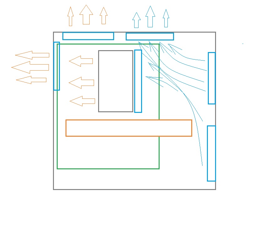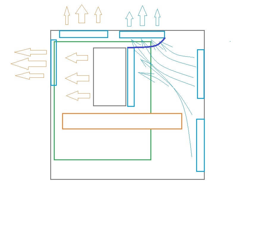 и тогда какой смысл от среднего верхнего вентилятора? проще заклеить перфорацию. я так и сделал в Z9. заклеил какой то жесткой пленкой на скотч. или от верхнего посередине будет смысл если кулер ЦП горизонтально.