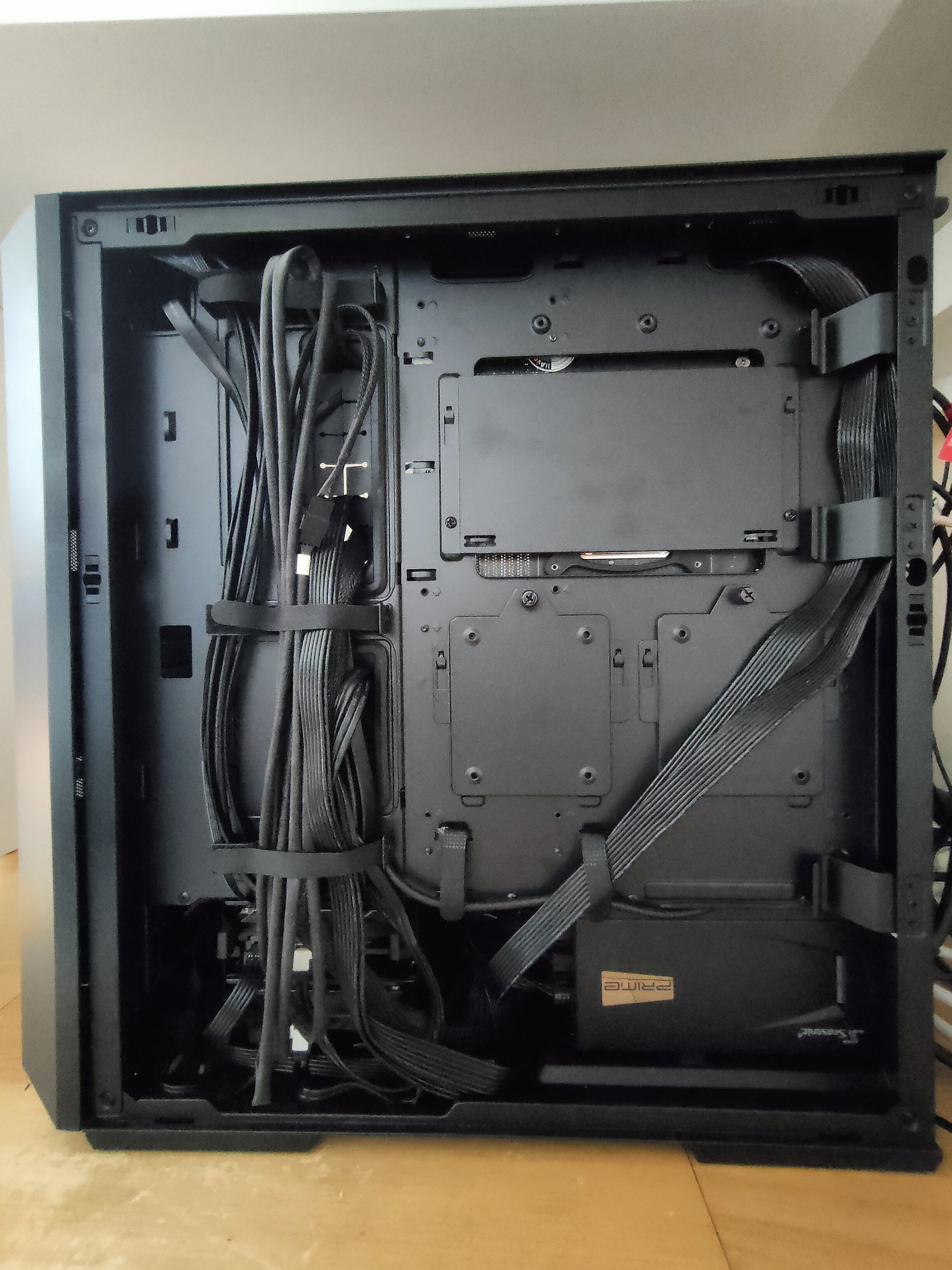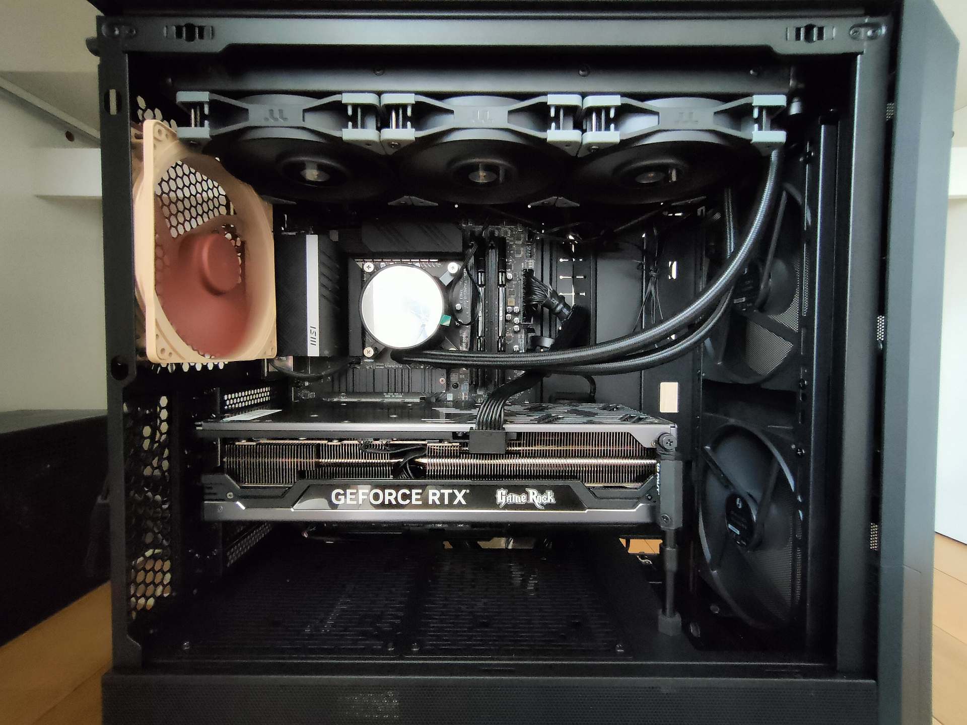 Качественный, продуманный корпус с хорошей продуваемостью. Сам перешел с большого Fractal define r6 и Noctua D15. На фото с картой palit 4080, до передней стенки еще >70мм.