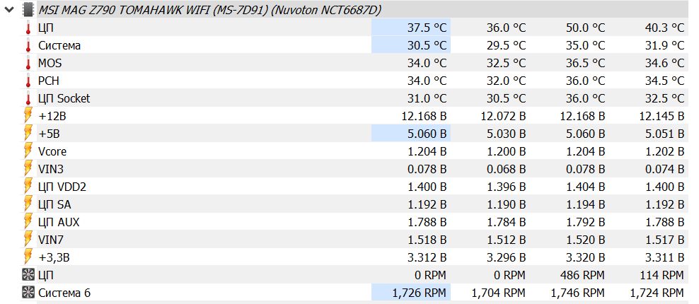 В bios настроил график вентиляторов. У вас проц Intel или AMD? И, да, в комплекте материнской карты есть проводные датчики температуры EC_TEMP1, EC_TEMP2?