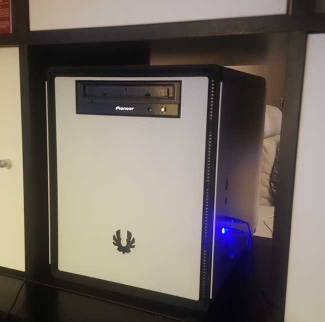 День добрый! Существуют ли в природе корпуса с размерами 33 на 33 см (высота х ширина) 37 глубиной (минус 1-2 см по любому размеру)? Для стелажа IKEA серии Kallax. Я купил ButFenix Prodigy. Но пришлось откручивать верхнию и нижнюю ногу. Т.к. не входил в ячейку. Боковые USB порт и кнопки доступны. Даже флешку можно вставлять. Но есть несколько штрихов которые хотелось бы добавить. Например окультурить провода сзади. Подскажите какой нибудь магазин где есть нестандартные кабеля. Например ищу Г образный кабель питания для БП, что бы разъем входящий в БП был Г. И Г образный Micro HDMI кабель - HDMI. На видеокарте только такой. Правда карту хочу менять. Все таки 580 GTX печка еще та. Но не прям сейчас.