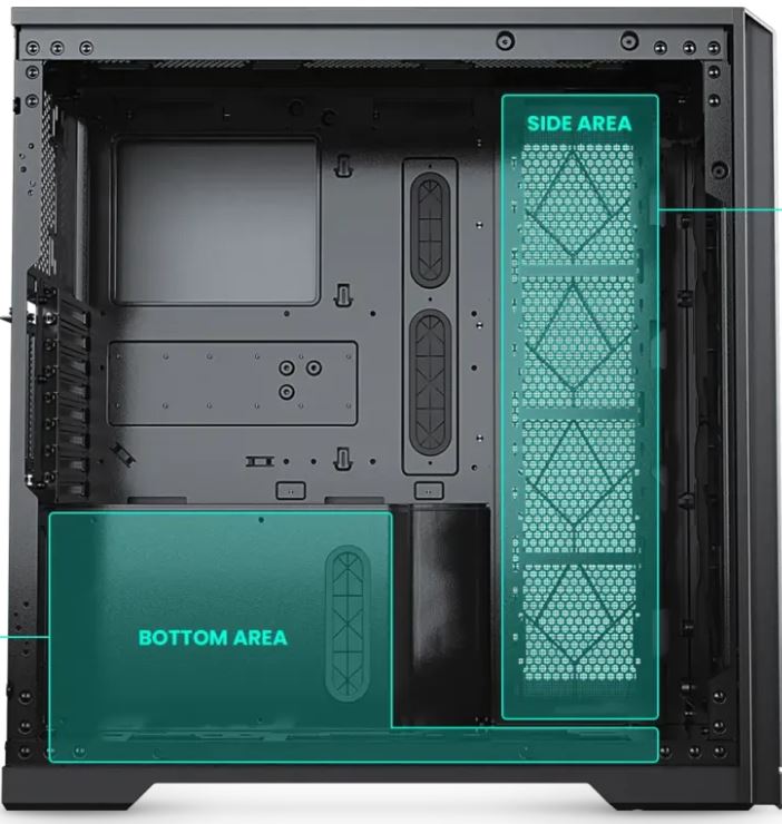 Дополнительный воздухозабор, который осуществляется через специальные окна, расположенные в нижней и боковых частях некоторых корпусов, позволяет увеличить поступление холодного воздуха для систем охлаждения видеокарт и процессоров.