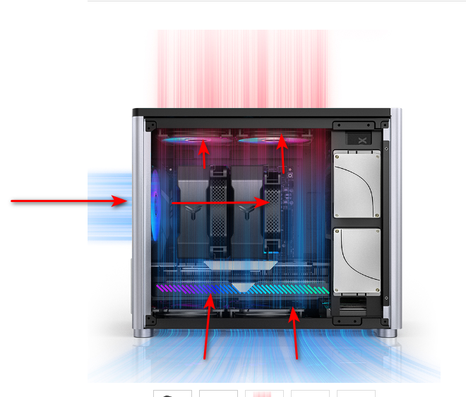 Дополнительный воздухозабор, который осуществляется через специальные окна, расположенные в нижней и боковых частях некоторых корпусов, позволяет увеличить поступление холодного воздуха для систем охлаждения видеокарт и процессоров.