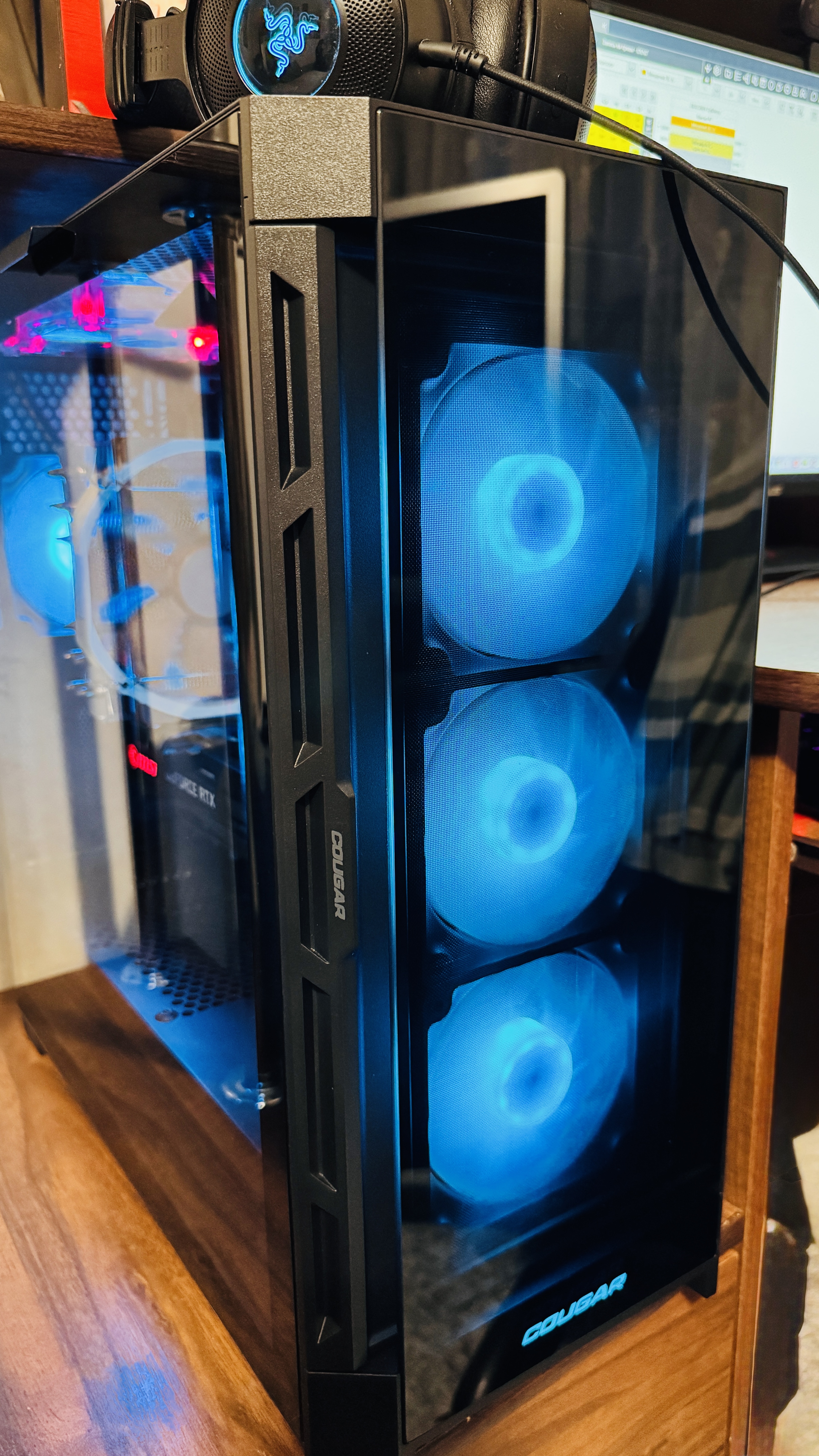 Долго я порывался поменять свой старенький Cooler Master Haf 912+, так как внешне я очень кайфовал с него, но прогресс не стоит на месте, и его время подошло к концу... Долго я выбирал ему замену, пересмотрел миллион видео-обзоров, поспрашивал у ребят на форумах и всё сводилось к одному, к Duoface Pro... Когда я всё собрал и включил его, я был в состоянии лёгкого шока и тяжёлой эйфории... ОН БЕЗУМНО КРАСИВ !!! ВОТ ПРЯМ БЕЗУМНО КРАСИВ !!! Оставил стекло на морде так как рекордов разгона ставить не собираюсь. Широкий 24 см, очень вместительный. Добавить в глубину 3 см и это уже был бы полноценный Full Tower. Довольно тихий, практически бесшумный, не знаю, кто там писал про дохлые и шумные вентиляторы, я их вообще не слышу... В играх температуры до 60 даже не доходят... Вобщем, покупкой доволен на все 💯... Однозначно рекомендую к приобретению!!!