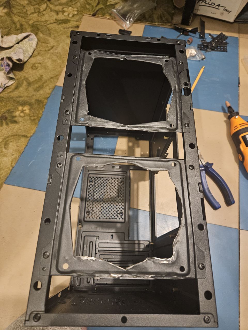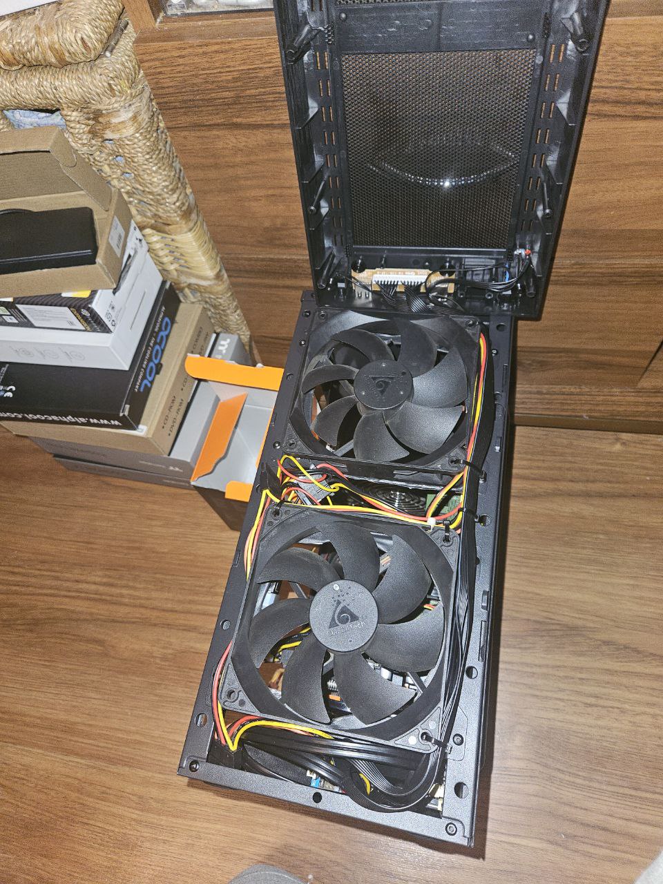 Вобщем накопилось тут у меня барахла всякого решил всё запихнуть в один комп. Корпус взял Ginzzu B170, вот самый дешманский который только нашел. на удивление в нём сетчатая морда. А у меня как раз куча старых вертушек. единственное что это
