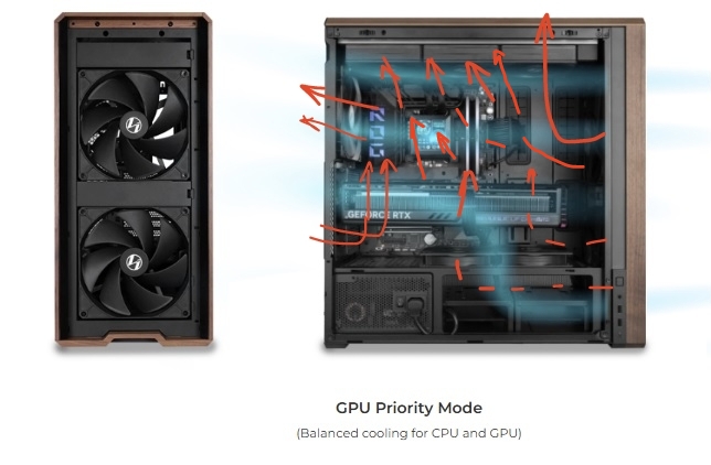 Да там, на этих слайдах Lian Li, вообще дичь нарисована. Такие воздушные потоки были бы возможны только при отсутствии в корпусе "начинки" и при вентиляторах с полным отсутствием турбулентности. Сферический конь в вакууме. На самом деле там всё гораздо более хаотично и видяха сосёт воздух отовсюду, в том числе и через крышки l/o портов, как вы правильно заметили.