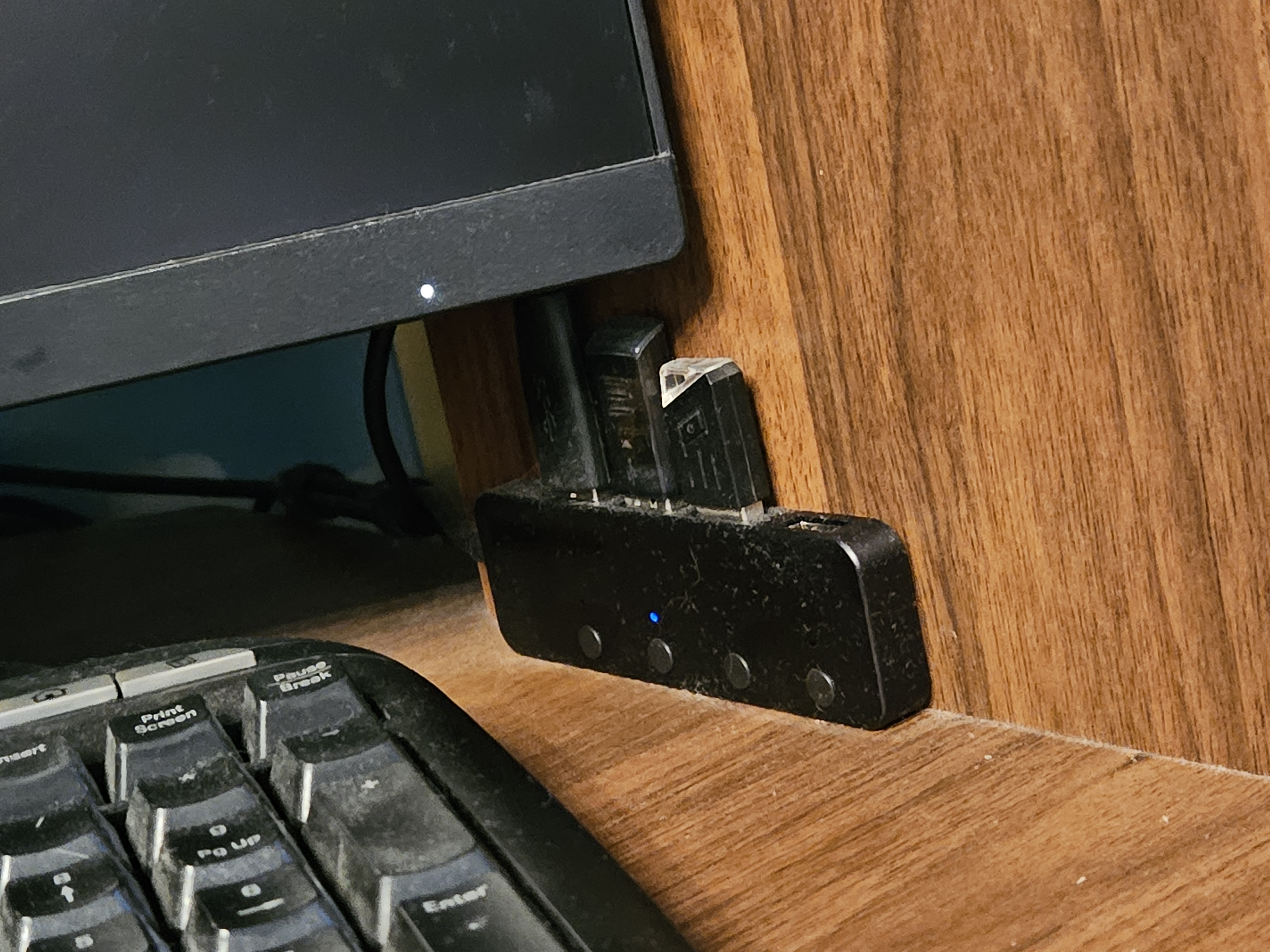 Ну их просто огромное количество разных от разных брендов - выбирай любой хаб. Проводные наушники висят на самодельном механическом коммутаторе: