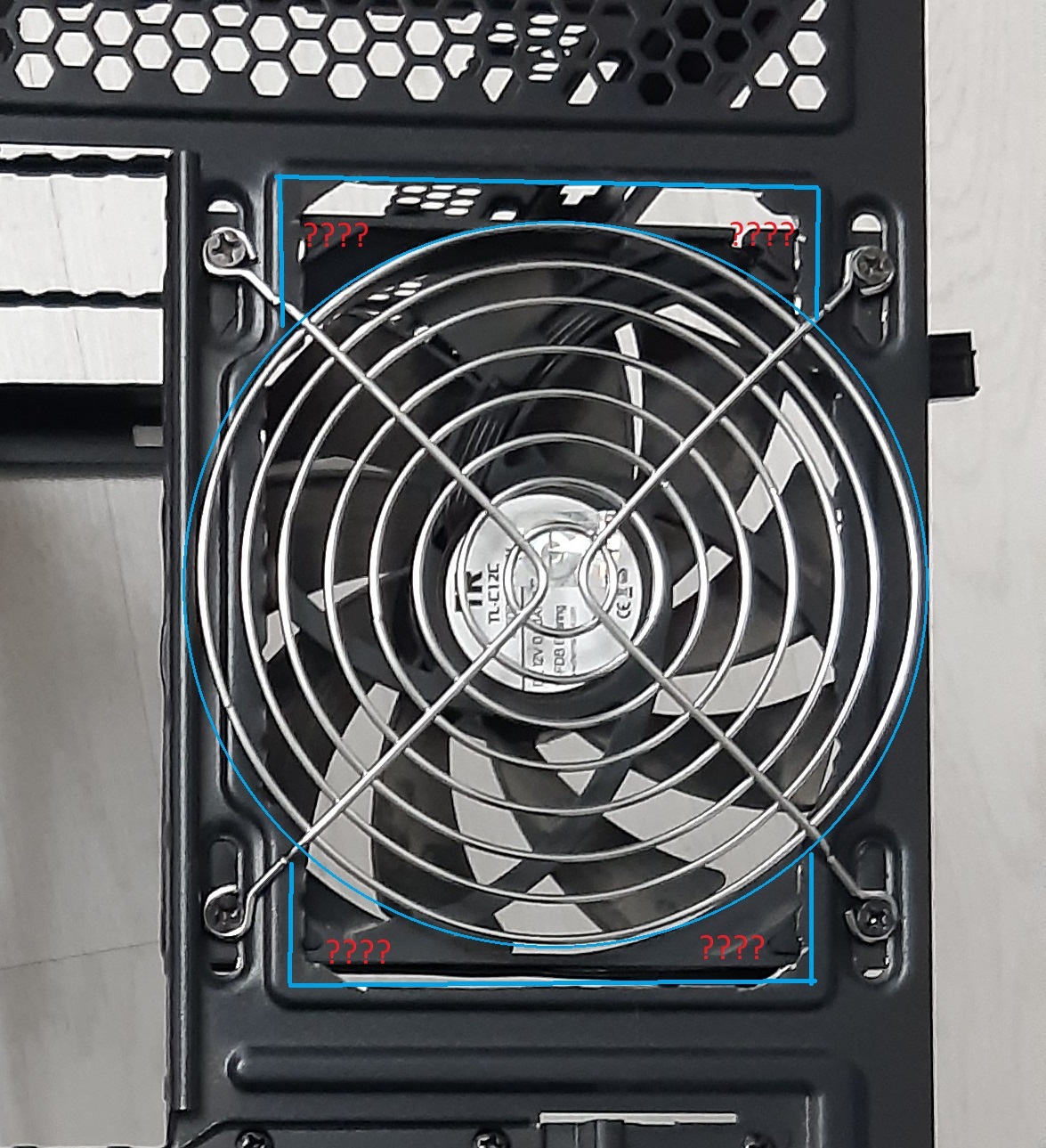 ужос. дыры снизу и сверху корпуса вентилятора для чего? наружный воздух подтягивать через них, снижать эффективность вентилятора на выдув и вносить сумятицу в организацию воздушных потоков.. я только для дыры закрыть, и так же потом гриль прикрепится. имхо и надо было резать перфорацию только по Ø крыльчатки