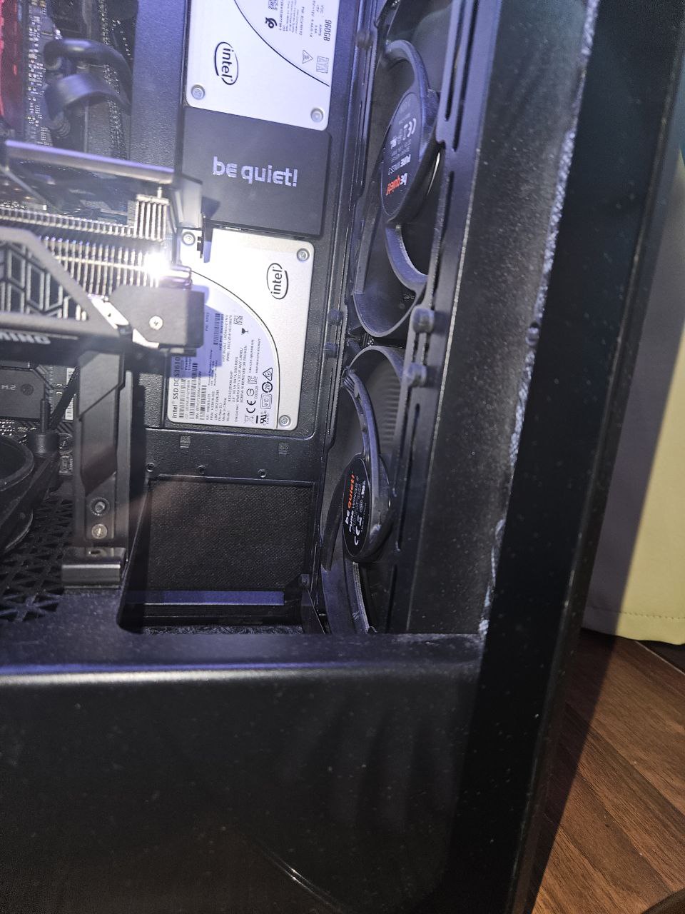 Заказал два Pure Wings 2 на 120мм, приедут через неделю. Поставлю один на боковую крышку и заменю задний Cougar, потому как на высоких оборотах он достаточно шумный. Сверху и спереди пока оставлю 200мм, они тихие даже на максимальных оборотах.