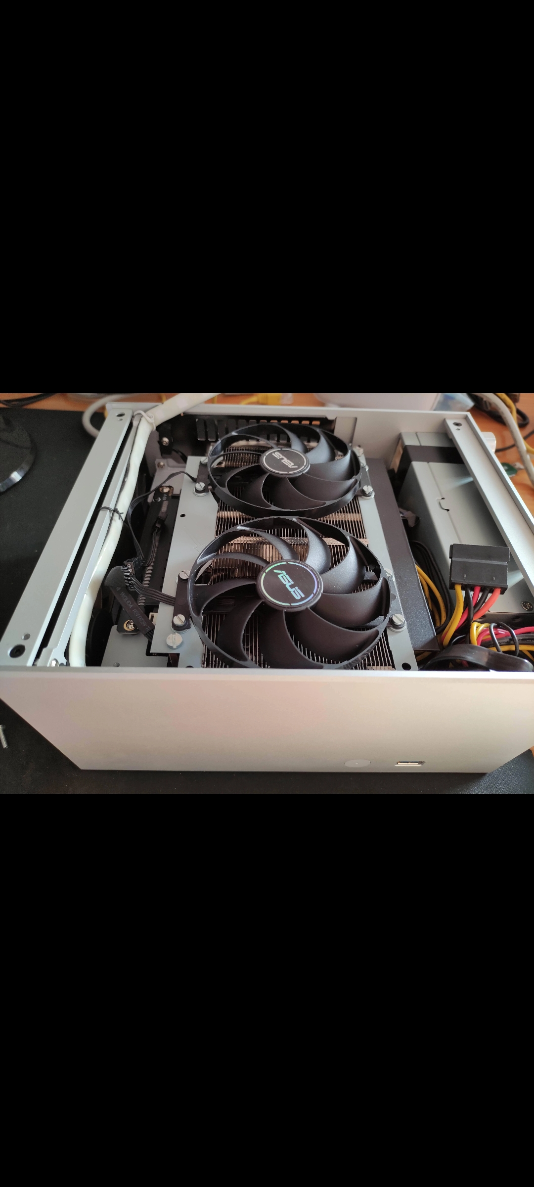 Блин(( возникла проблемка. Имеем корпус metalfish s3. До недавнего времени в нем трудилась gigabyte gtx 1070 mini itx oc (длиной 178 мм). Рассматривал на замену 3060 и 3060 ti. Внезапно удалось урвать практически новую ASUS DUAL rtx 3060 ti. Увы моя память меня подвела и я совершенно забыл, что предел по длине видеокарты в моем корпусе составит 195 мм. Очень грустно((. Стал думать что делать. Первый вариант самый долгий и относительно незатратный - продаем asus dual и покупаем (с небольшой доплатой) на msi rtx 3060 ti aero (длина те же 178-180 что и у гигабайта). Второй вариант - ищем другой мини корпус который позволил бы принять на борт 200 мм карту. Таковой также нашел - это многим знакомый sunmilo s02. На алике сейчас за него просят 12-14к. Корпус конечно хорош, получше S3. Но даже с учётом продажи на Авито S3 (хоть за что) все равно получается прилично докидывать. Оставлю на совсем крайний вариант. Если кто знает какой корпус до 6-7 л, с flex БП, который может принять на борт 200 мм видеокарту - буду признателен за варианты. Третий вариант увидел на Реддите. У Custom mod была похожая проблема в аналогичном корпусе Loli 1. В общем он снял пластиковый кожух и видеокарта сразу стала 186 мм, что меня полностью устраивает. Но как оно будет везти себя в нагрузке - непонятно
