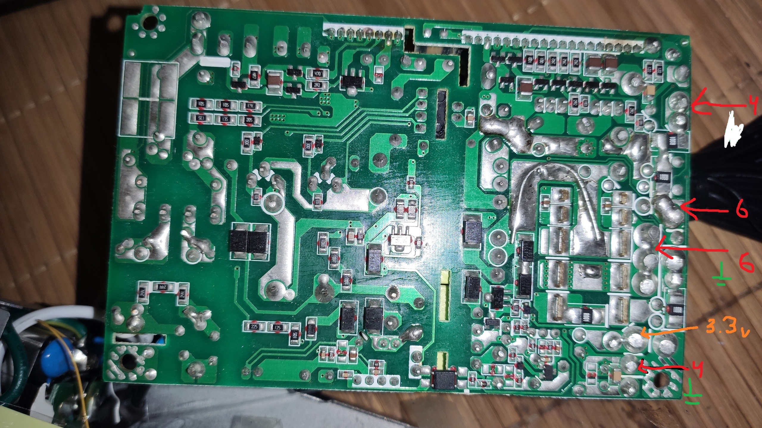 Задумал собрать себе маленькую itx систему для чего приобрел с рук блок Enhance EPN-7145B2 имеющий 2 линии 12в по 20А. Что за зверь именно в модификации 2B в интернете не нашел. Как сказал продавец их они снимают с серверов HP. На известной барахолке нашел модификацию 7145B1, единственное отличие это одна линия 12в на 37А. Собственно в этом и заключается моя дилемма. Имеет ли данный блок реальные раздельные линии 12в, потому что в таком случае мне необходимо пересмотреть идею ставить карты выедающие 200 ватт дабы не перегружать блок. Либо это не настоящее разделение, линии запараллелены и спокойно можно грузить большими мощностями. Так же, если линии таки разделены, есть ли вариант это дело соединить в одну? Безопасно ли? На самой плате есть подписи для некоторых выводов 12V_1 и 12V_2. Все увидеть невозможно не выпаяв, частично на плате обозначил что куда идет: 6 это 6-пиновый коннектор на карты, 4 это 4-пин на процессор. Сам в схемотехнике не силен, надеюсь кто поможет)) Заранее спасибо!