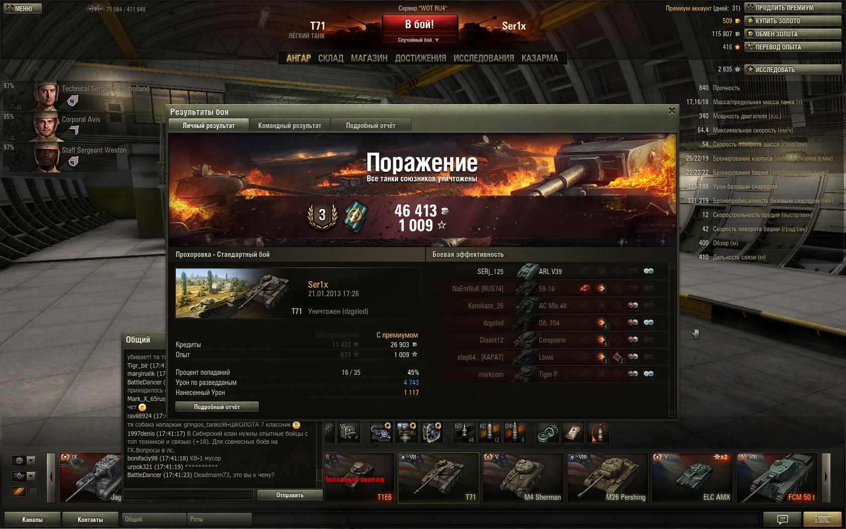 Лампочка на американцах у меня только на першинге, но с него экипаж дербанить не буду, ибо он потом на паттона в полном составе пойдёт. Экипаж с Т71 уже никуда не пойдёт, на СТшки уже с голдошермана сниму и переобучу за серебро.