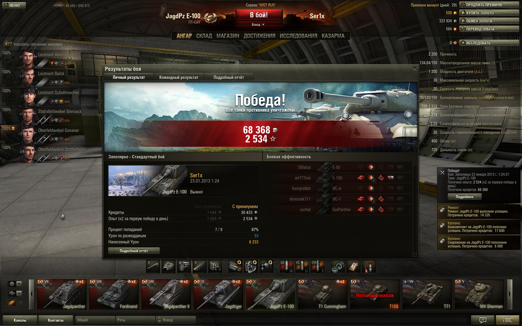 Победа! Бой: Эль-Халлуф 22 января 2013 г. 22:36:40 Танк: Type 59 Получено опыта: 1 685 Получено кредитов: 107 651 (компенсация за ущерб от союзников: 10) Достижения в бою: «Стальная cтена», «Поддержка»