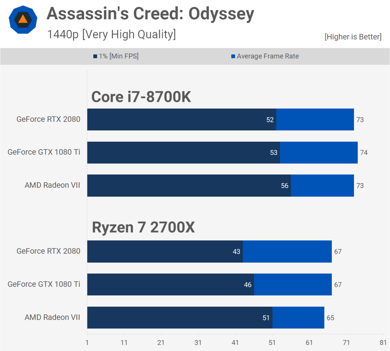 Вывод: в 1440P и игре Tom Clancy's The Division 2 (API DirectX 12) между 2700Х и 9900к разницы нет.