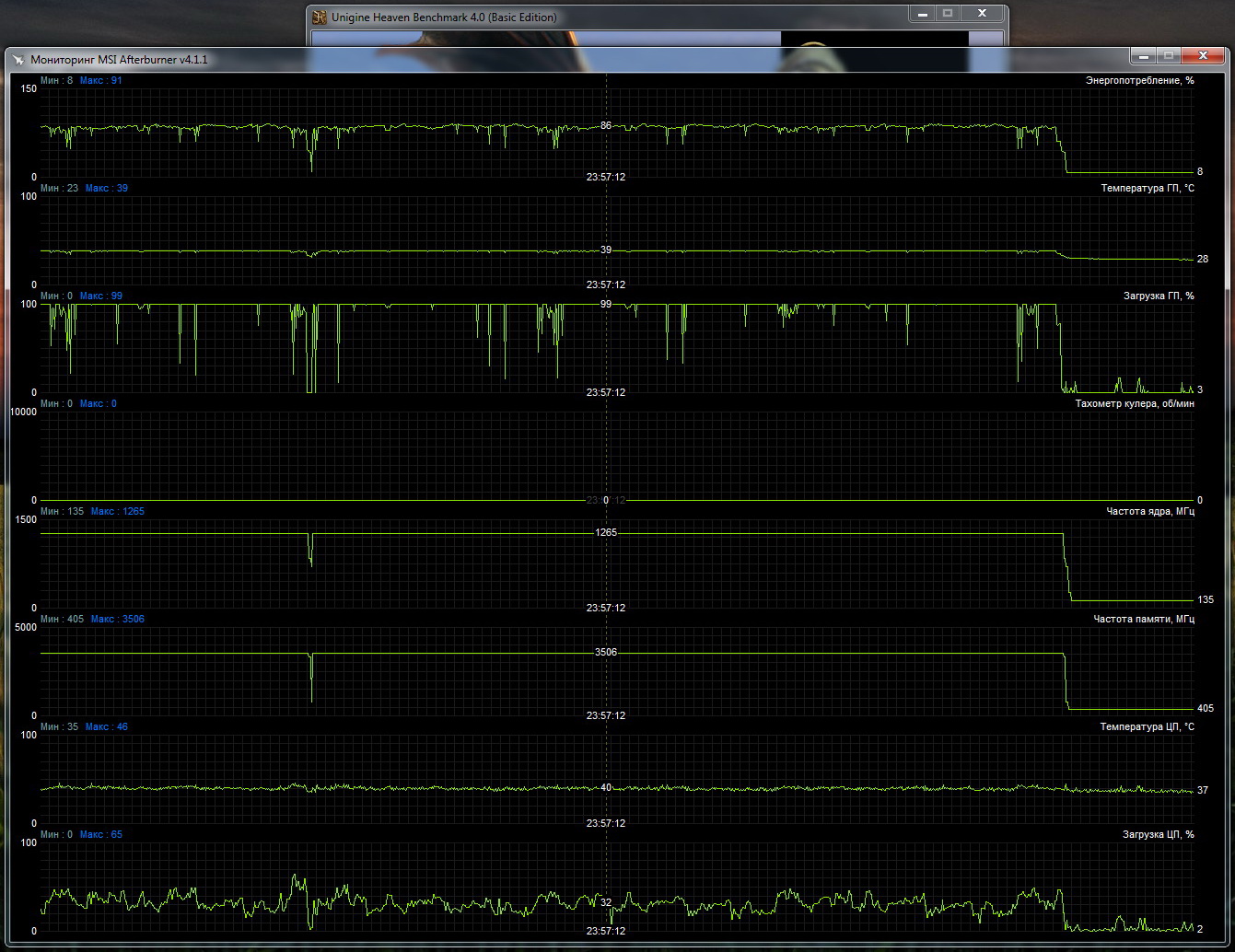 у меня при 1400 и 8200 на воздухе темпа была 85С , заменил термоинтерфейс на жм, стало 82С на 77С карта выходила за пару минут, потом уже не продуваемый корпус добивал.