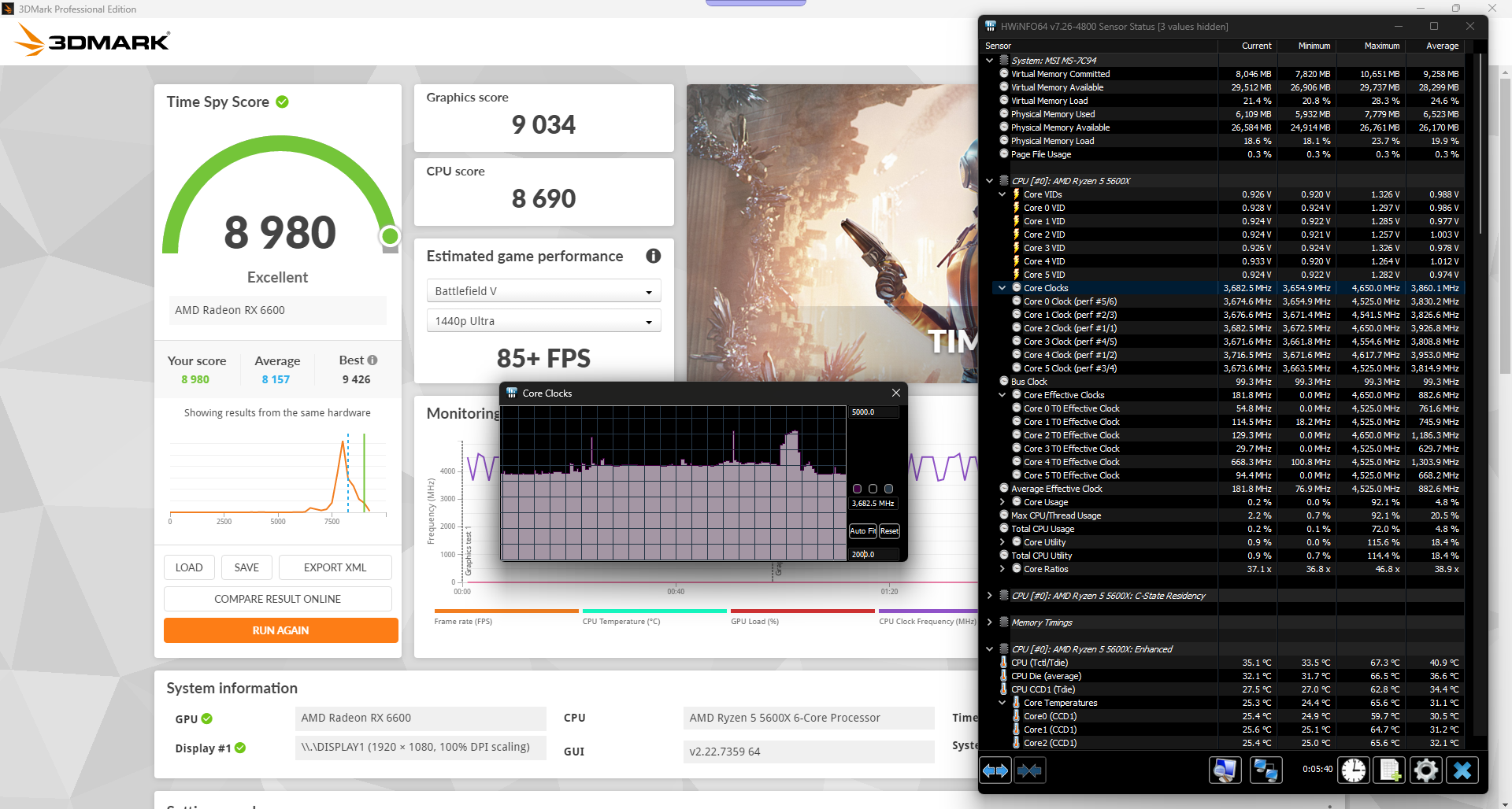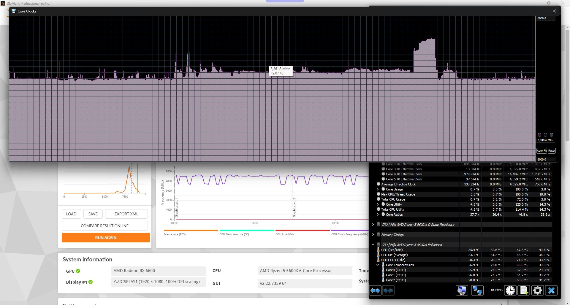 vol2008 выше добавил более детальный график с HWiNFO, с выборкой раз в 500мс. Я так понимаю с RX6600 просто нет постоянной/высокой нагрузки на все ядра, вот и средняя частота получаются такой неровной. Я выше прикреплял скрины RX6600 c 5950Х и 12900К...у последнего там вообще график кривой по самое немогу.
