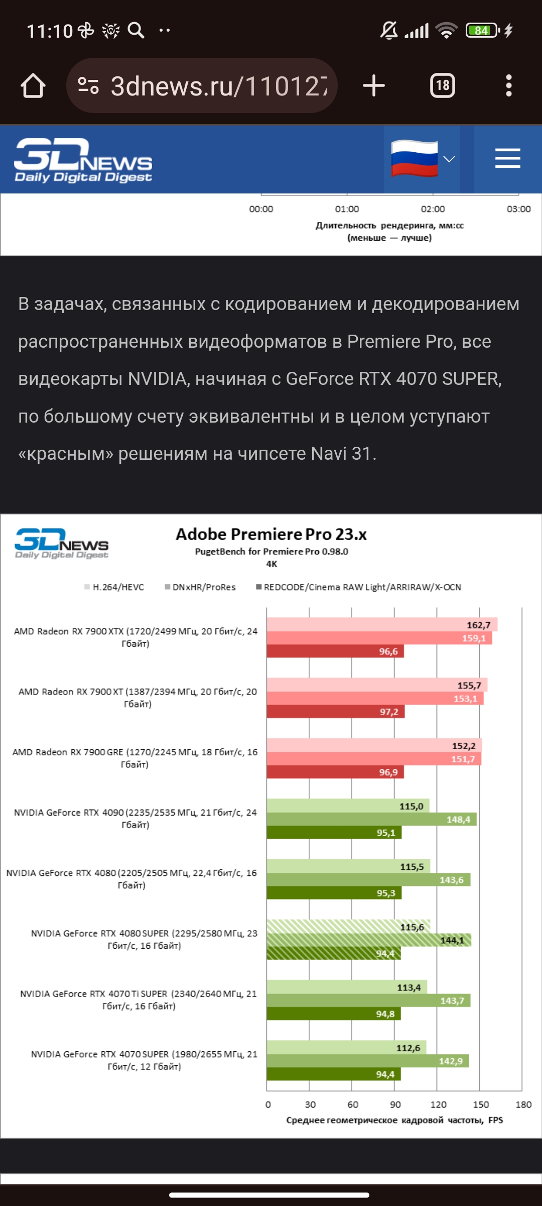 У зелени намного больше проблем с драйверами. Я скидывал пруф на владельца 4090, который из - за этого продал её и купил 7900XTX. Вот еще раз https://youtu.be/ksPztKN3dgU?si=-gWNF6wz9yvov8I8 Остальные твои доводы обсуждали много раз, большинство в этой теме с тобой не согласны. Если ориентироваться на продажи, то Nvidia за прошлый квартал потеряла 6% рынка дискреток. Это значимый индикатор, говорящий что геймеры не оценили твои (Хуанга) аргументы. В Европе самая продаваемая видеокарта - 7800XT. https://www.ixbt.com/news/2023/11/15/ra ... ctory.html