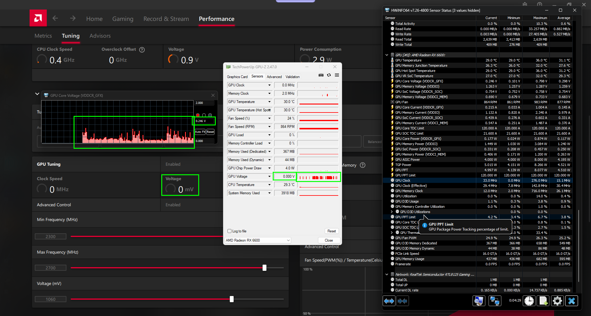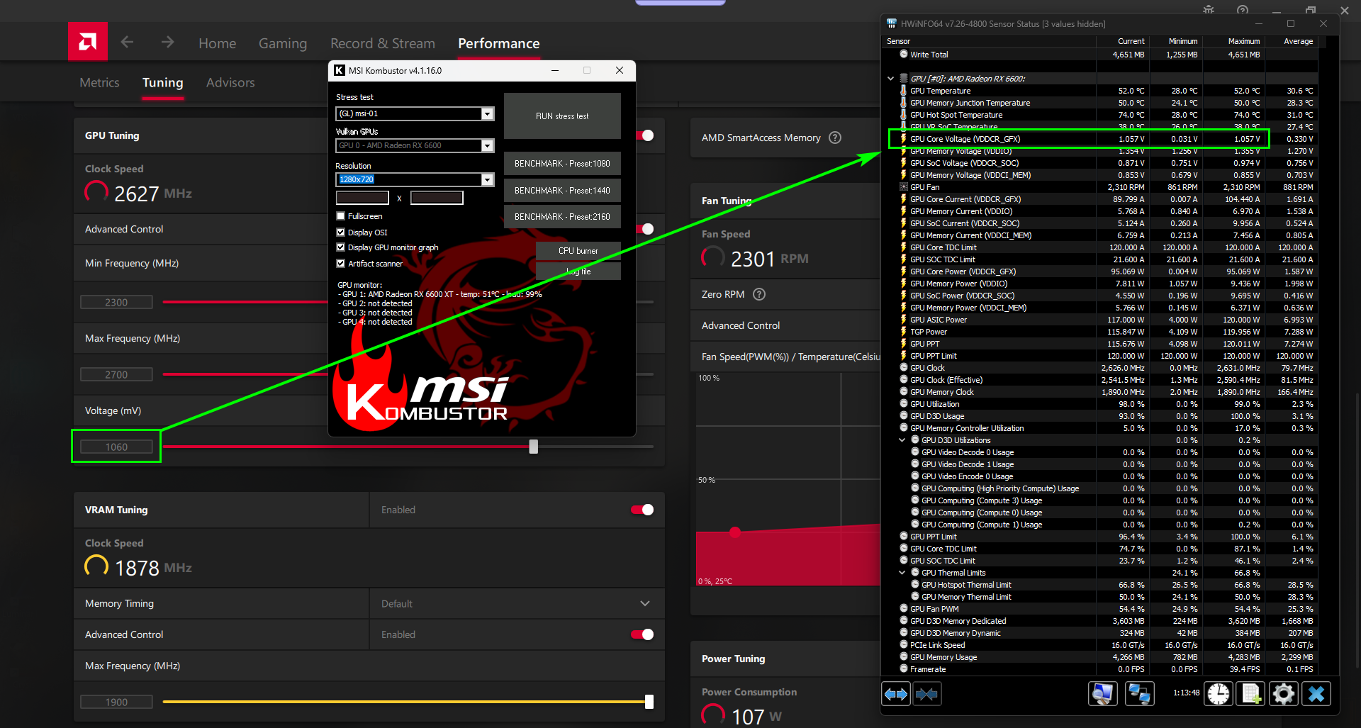 радовался что карта работает при 2600 МГц на 1.1 В, а на деле напряжение вообще не менялось
