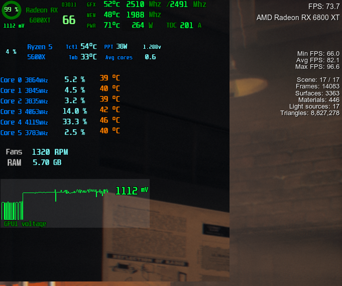 Скорее HWInfo неправильно, точнее что-то сильно усредненное и далекое от реального. Видимо шим так настроен на картах с navi 2x. Но даже он репортит в районе 1.1, когда выставлено 1.065. Имхо, RTSS HAL более правдоподобные значения выдает.