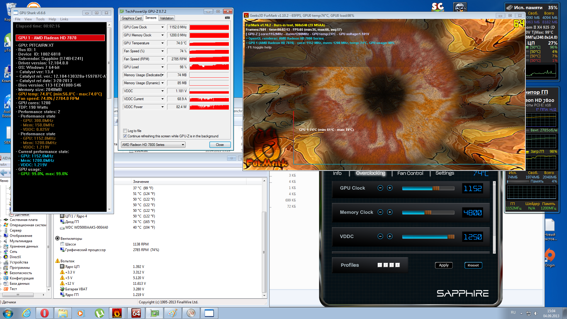 выше я отметил заниженное напряжение на всех линиях и симетричное уменьшение 12 линии с повышением наруги на гпу. думаю если буду на этом бп сейчас играть с напргуой то или стабильность всей системы нарушу или ушатаю бп)) крайзис крайзис.... бублик))) ведьмак ушатывает аж мосфеты кипят))) проблема такова еще что у меня фен по напруге разогнаный и он еще соки жрет не кисло) а на дефолтном 925 смысла мне кажеться гнать не будет эту карточку)