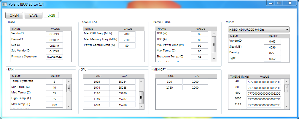 DPM0: GPUClock = 300 MHz, VID = 0.80000 V DPM1: GPUClock = 466 MHz, VID = 0.81800 V DPM2: GPUClock = 751 MHz, VID = 0.82400 V DPM3: GPUClock = 1019 MHz, VID = 0.91200 V DPM4: GPUClock = 1074 MHz, VID = 0.95600 V DPM5: GPUClock = 1126 MHz, VID = 1.00600 V DPM6: GPUClock = 1169 MHz, VID = 1.04300 V DPM7: GPUClock = 1216 MHz, VID = 1.10000 V