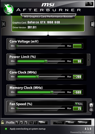 Добрый день, имею 1060 Palit Dual, решил разобраться с температурным режимом и разгоном: Прибавил + 300 по ядру и 600 по памяти, тут же получил артефакты на рабочем столе (Сильно ли это скажется на работе вк, если я почти сразу снизил до 200 по ядру и они пропали) В общем поставил вот такие настройки - скриншот приложил, адекватно ли это или я что-то не правильно делаю?) Так же хотел уточнить по температурам, в играх таких как PUBG, BF1 и т.д. на максимальной нагрузке без разгона температуры доходят до 75-76 градусов, при этом вертушки крутятся где-то на 50%, что с ней не так)) При разгоне имею чуть больше температуры + 2 градуса примерно)