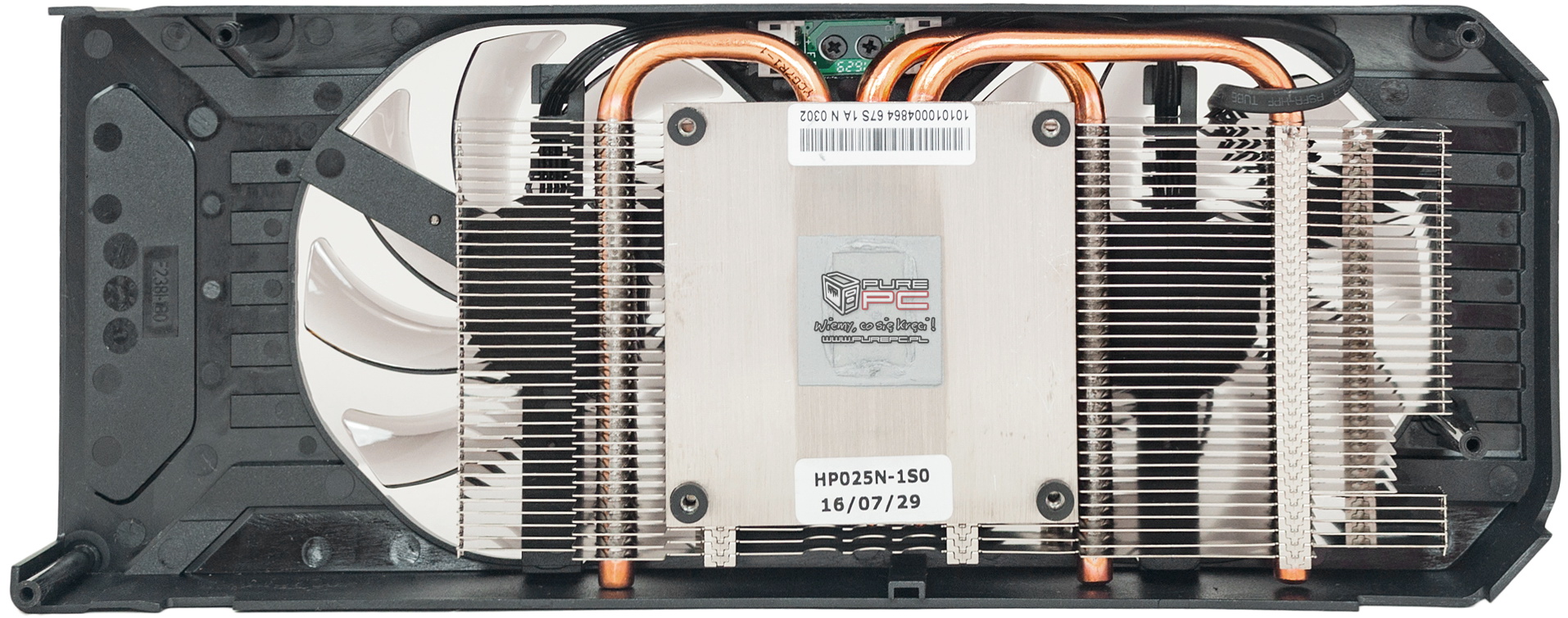 Приветствую) Немного экспериментировал с разгоном Palit GTX 1060 Dual 6gb 1061 d (В fire strike стабильные 2100 по чипу и 9500 память без повышения power limit), которую брал еще в 2016-м по нормальным ценам и заинтересовался устройством системы охлаждения. В сети полно подробных обзоров jetstream-ов, но обзора dual-а в котором снимают и показывают СО найти не удалось Снимать гарантийные наклейки и демонтировать кулер, только чтобы посмотреть его устройство очень не хочется. Здесь же на оверах есть обзор gainward-а https://overclockers.ru/lab/show/78242_ ... e-gtx-1060, я так понимаю это аналог dual-а 1060 d и радиатор у него как у jetstream-ов. Есть на форуме фотки снятой СО с 1061 d или ссылка обзоры данной ревизии карты?
