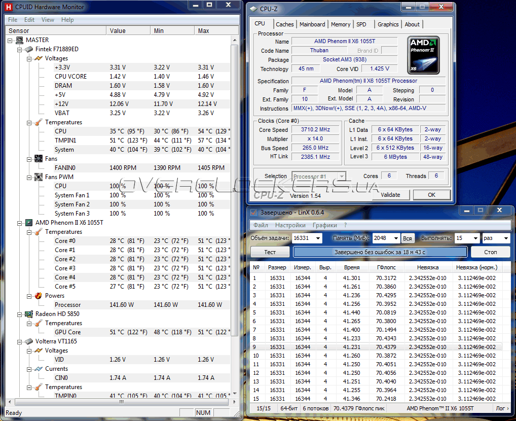 kartisa Нет. Я еще раз повторяю - у меня не самый лучший кулер, с кривым основанием. Деп Кул Айс Вэрриор. Который сейчас использую с i5. При понижении напряжения до 1.30V(номинальное 1.35V) Тубан гнался аж до 3.64ггц. Но для 4ггц приходилось задирать до 1.450V напряжение и это прибавляло ~10-12 градусов к температуре ЦП. Она возрастала с 50-52 до 62, а мне жалко было использовать ЦП в таком режиме(к тому же порой Линкс тест не проходил, ребутился из-за превышения порога температуры... в играх и в остальном было все ок, т.к. линкс наиболее сильно прогревает проц), т.к. в ближайшее время я его менять не планировал. А деградация наступает при 1.47-1.50V и выше у этих ЦП(а мать была Асрок 890gx extreme 3, на которой 1.45V=1.5V).