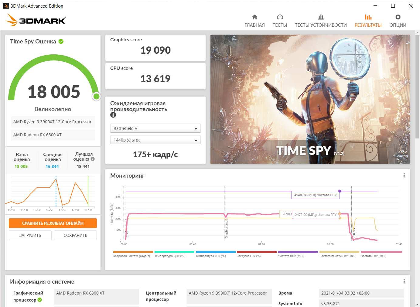 Вроде, уже неплохо, да? Особенно для моей "простушки"! Тысячу, как с куста! "Чутка" обогнала стоковую 6900XT... А по поводу 3080 - продал как раз из-за того, что слишком требовательна была по питанию! Это если мягко сказать... Но продал достаточно давно, ещё в октябре за хороший ценник, практически новую, как раз там самый "кипишь" был со спросом.