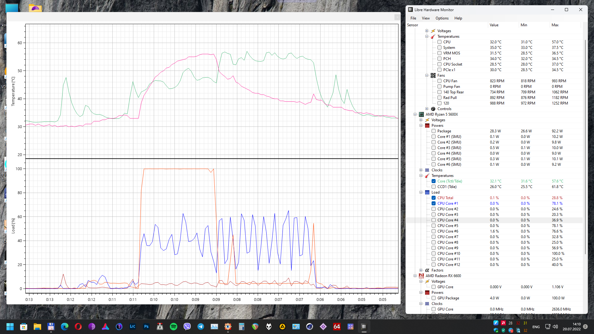 На скрине троя, попробую. По окончании теста начинает сильно грузить процессор, а пока тест идет...5-7%...ну и 60 градусов в пике в HWiNFO после выхода из игры. Сделал еще прогон с записью графиков...то у процессора нагружено в основном только первое ядро...я там вывел и общую загрузку и отдельно первое ядро. Ну и опять же видно что процессор больше загружен после бенчмарка почему то.