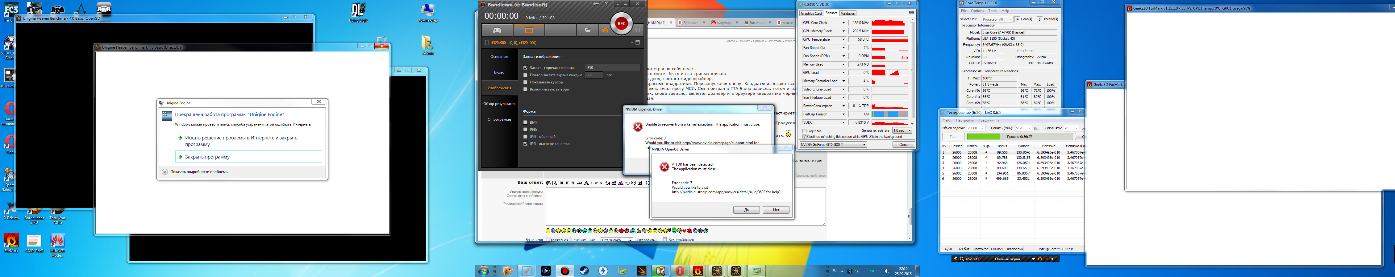 сейчас Хаевен гоняю аж в Трех окнах, в разных режимах ДХ11 /ДХ10 /GL рядом открыт фурмарк, тоже три окна. Линукс крутится. и все вместе это уже минут 30 тестируется.