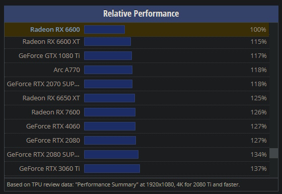 rumax ну 6600 как 2070 обычная, а 6600хт как раз как 2070с, но при этом меньше жрет и она тупо выгоднее по цене 6600хт при той же производительности имеет потребление на голову меньше, поэтому брать 2070с за 22 куска надо как минимум не разбираться в технологичности