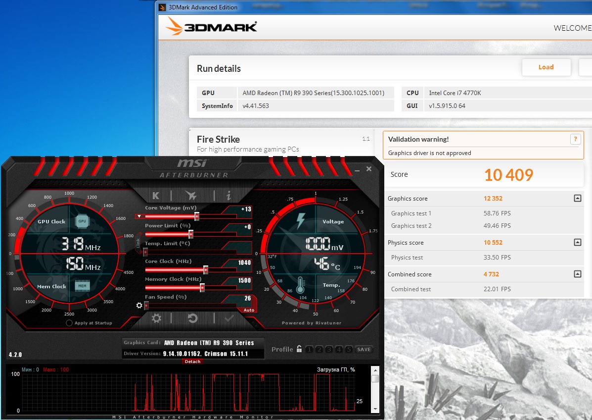 Art-21 Комбин. тест - это к вашему CPU вопросы, а результат видеокарты аж 12296 очков, что очень хорошо) Моя выдала почему-то 11500 А 12500 только 290Х. Что-то тут явно не так