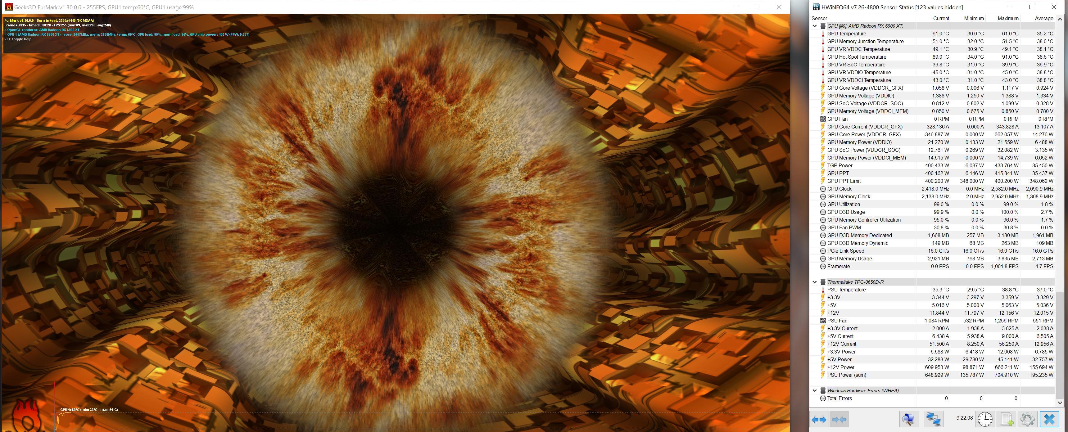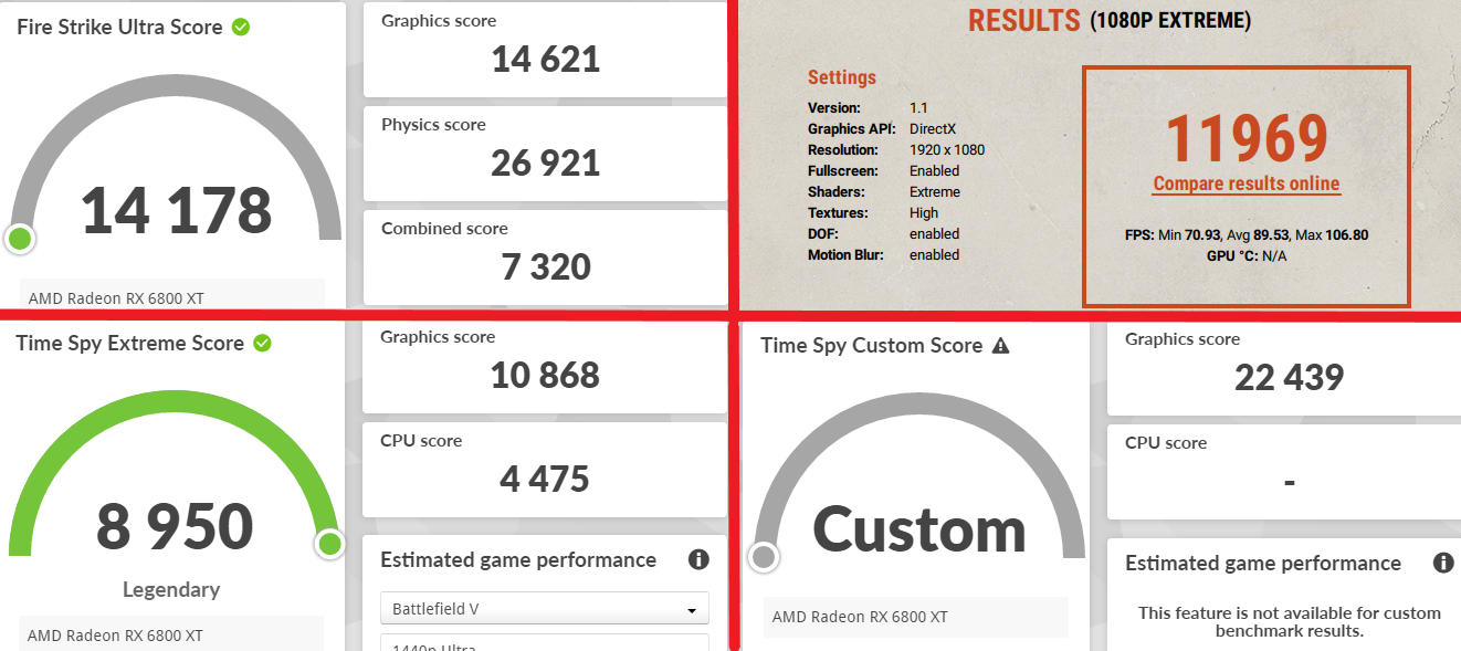 Неплохо) А мои резы хорошо, что в топ-100 попали (TSE = 58, FSU = 27), ибо и проц не на свой максимум работает, и видеокарта на 2600 МГц в тестах была (а первые строчки занимают ребята с частотами >2700 МГц, да ещё и память на чипах XTXH сильнее гонится, т.к. нет искусственного потолка в 2150 МГц).