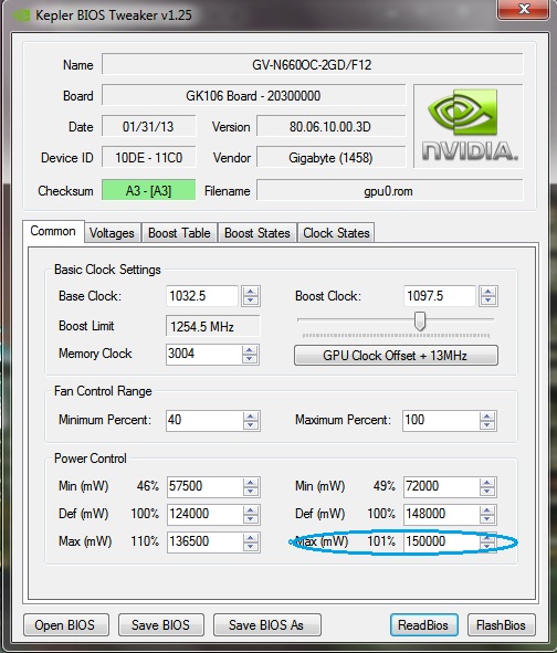 Кто подскажет что можно улучшить на моей карте GV-N660OC-2GD в биос, сам еще не редактировал , мало что смыслю в этом, вот скрины посмотрите, в биос еще ничего не менял стоит заводской по идее F12