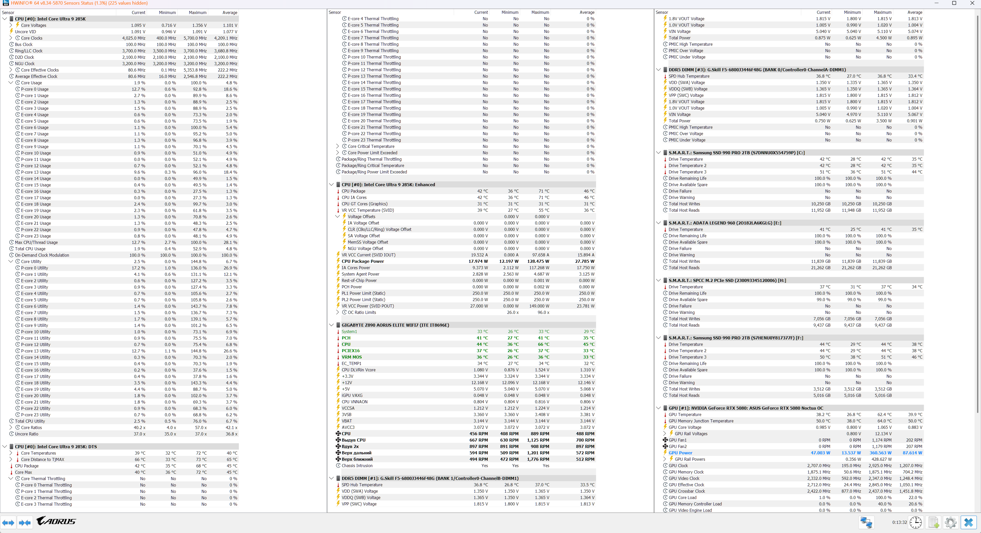 В играх прирост есть. Тот же Last Of Us Part 1 (начал сейчас проходить в 4 раз с нуля на максимальном уровне сложности) тащит в нативе, то есть с выключенным DLSS, и на Макс пресете качества. Держит залоченные 60 fps, загрузка GPU судя по оверлею Nvidia - в среднем 75-85%, иногда подскакивает до 98-99%. Правда, тут есть одна непонятка - судя по NWinfo пиковое потребление в данной игре не превышает 285 Вт, с этим я пока не разобрался. В других же тестах (например 3DMark Nomad) карта уверенно жрёт 360 Вт на чипе. Сравнение в данном тесте и скрин из Hwinfo прилагаю.