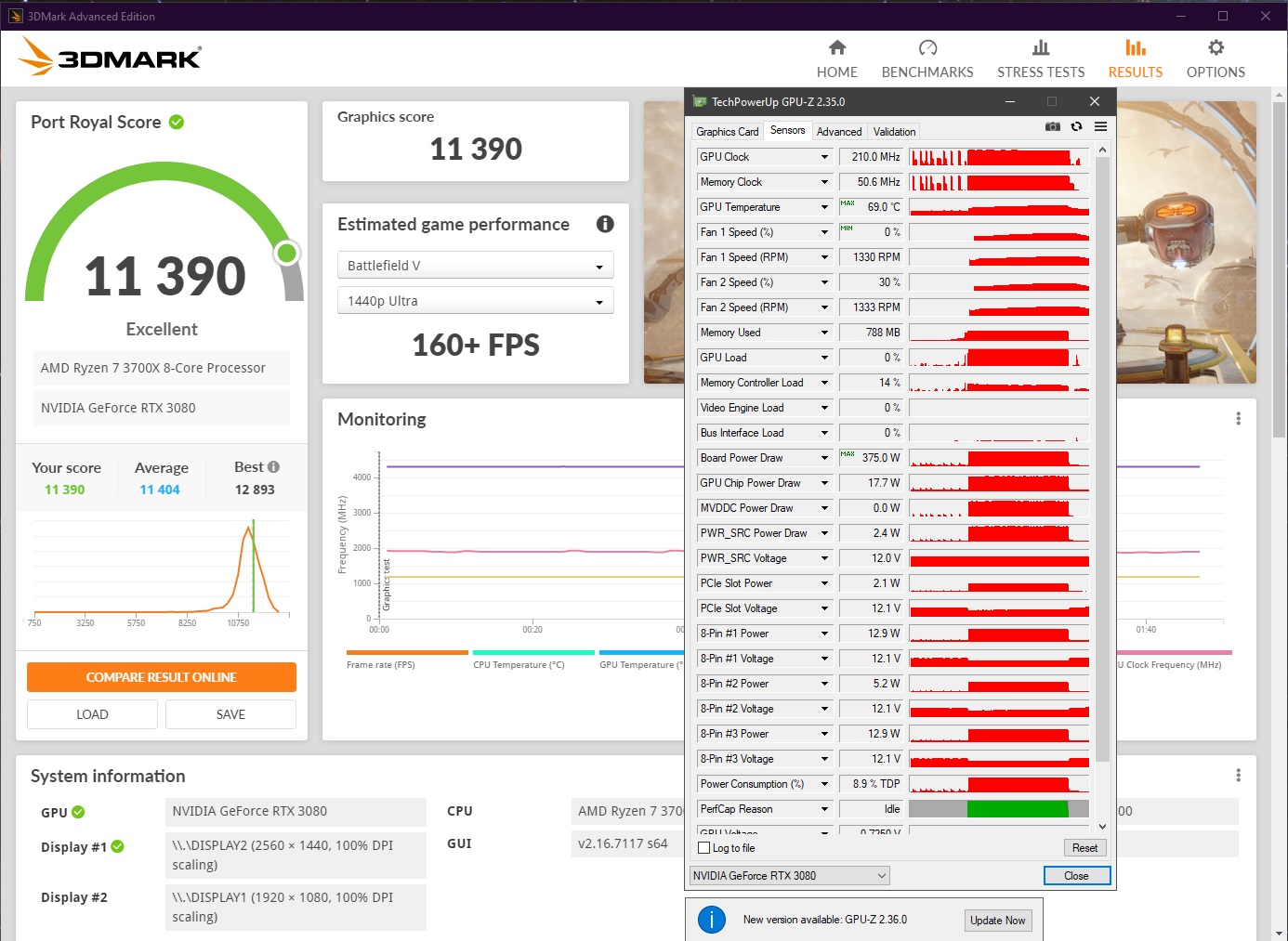 Добавлено спустя 55 минут 59 секунд: Paxton Fettelhttps://funkyimg.com/view/3av5H только что прогнал тайм спай...мониторинги съедают 200 баллов...без них 19000 по графике(это стабильный разгон), память выше опасаюсь проверять(+750 ходила). 61 по гпу и 1600 оборотов максимум. Весь мониторинг...это без андервольтинга и прочего.
