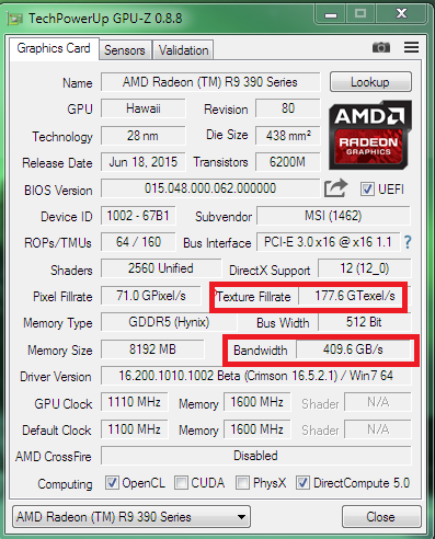 Только что глянул скрины gpu-z 280-й и сравнил с 380-й, только показатель bandwidth (пропускная способность) выше, верхние показатели (Texture Filrate) у этих карт равны, да и в играх 280-ю эта пропускная способность как мы знаем не спасает, она уступает 380-й, не сильно конечно, но всё-же уступает...