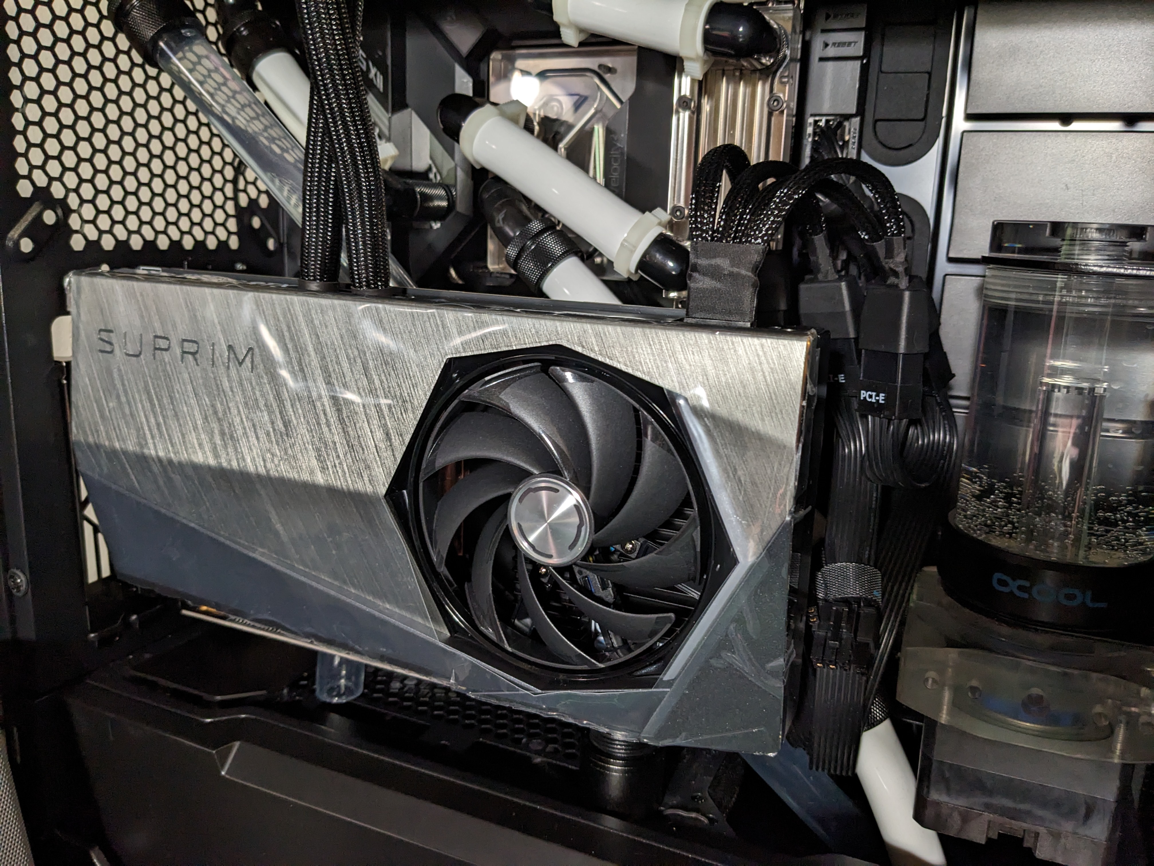 Сколько уже месяцев прошло с даты релиза 4090 - 7, 8? И ни одной модели на рынке с предустановленным фулкавером. Не упоминайте про inno 3d. Она и не доступна, и, насколько помню из описания, там pl 450w никто не задумался увеличить. Да и доска - банальный реф. И приходится брать весьма приятный по эстетике кулер в виде suprim liquid x чтобы отправить его в коробку навсегда с первых же дней. Не нахОдите это странным? 4090, карта исключительно для энтузиастов, у которых как раз и преобладают кастомные контуры жидкостного охлаждения, а вендоры продолжают на них класть болт. Еще и в случае с Микростаром вопросы гарантии поднимаются-нужно им звонить и просить благословения на нарушение гарантийной пломбы. По крайней мере это мне сообщили и в магазине, в котором покупалась карта, и на ветках reddit по данной тематике. Очень не хватает EVGA с их адекватной гарантийной политикой по отношению к покупателю. В остальном с liquid x можно жить даже в стоке. Умеренно шумная, если не хочется видеть неприятных цифр по температурам. С нагревом памяти наконец-то нет проблем (привет всем бывшим владельцами 3080ti). По разгону-да обычная карта на AD 102. Выкрутив все ползунки afterburner вправо, докинув 160 на чип и 1000 на память, с первого прогона получил ~27500 в port royal и успокоился. Это на pci-x 3 версии, даже винду не переустанавливал. По крайней мере на стоковом охладе за рекордами гнаться лишено смысла. Зато жрет, конечно, весьма ощутимо повыше 3080ti. Видел цифру в 540 на 1.1v, что, очевидно, упор в PL в случае со штатным биосом. Пока альфовский фулкавер в пути, поставил 0.95v и 2800, что дает 2750-2780 эффективной, но все равно в плане аппетитов все еще далеко впереди предыдущей, подбираясь в том же port royal, или time spe extreme к 460Вт в пике на отметке 0.95v. Уверен, как и в случае с флагманским Ампером, фулкавер повзволит сильно сбросить энергопотребление за счет снижения температуры vrm. Ну и, наконец-то играбельный fps везде, во что играю сейчас. 4К, естественно, иначе зачем было менять видик. В Ведьмаке отключил dlss и все равно выше 50 кадров на всех максимальных настройках, плюс лучи. Киберпанк: трассировка пути+dlaa, без dlss, но с включенной генерацией кадров. Вполне играбельно по моим непритязательным требованиям. Всегда выше 40 кадров. Но ощущается то ли инпут лаг, то ли некая общая вязкость поведения игры в такой конфигурации настроек. Если же вместо dlaa включить пресет dlss на качество, то становится сильно непривычно плавно. Таких впечатлений на своей памяти и не вспомню. 3080ti сразу задыхалась, в первый же день покупки, в некоторых играх. Короче, положительных эмоций на второй день обладания-море. Из минусов это только провода. Лютый колхоз как это все смотрится сейчас. через переходник на 4 8пиновых pci-x. Жить с этим на долгосрок, даже с глухой боковой панелью я бы не стал. Оригинальный кабель 12vhpwr с 90 градусов углом подключения к карте от seasonic уже заказан. БП Seasonic Focus PX-850, надеюсь, замены не потребует. По крайней мере без модификации power limit, который микростаровцы, как по мне, то сильно зарезали для своего флагмана.