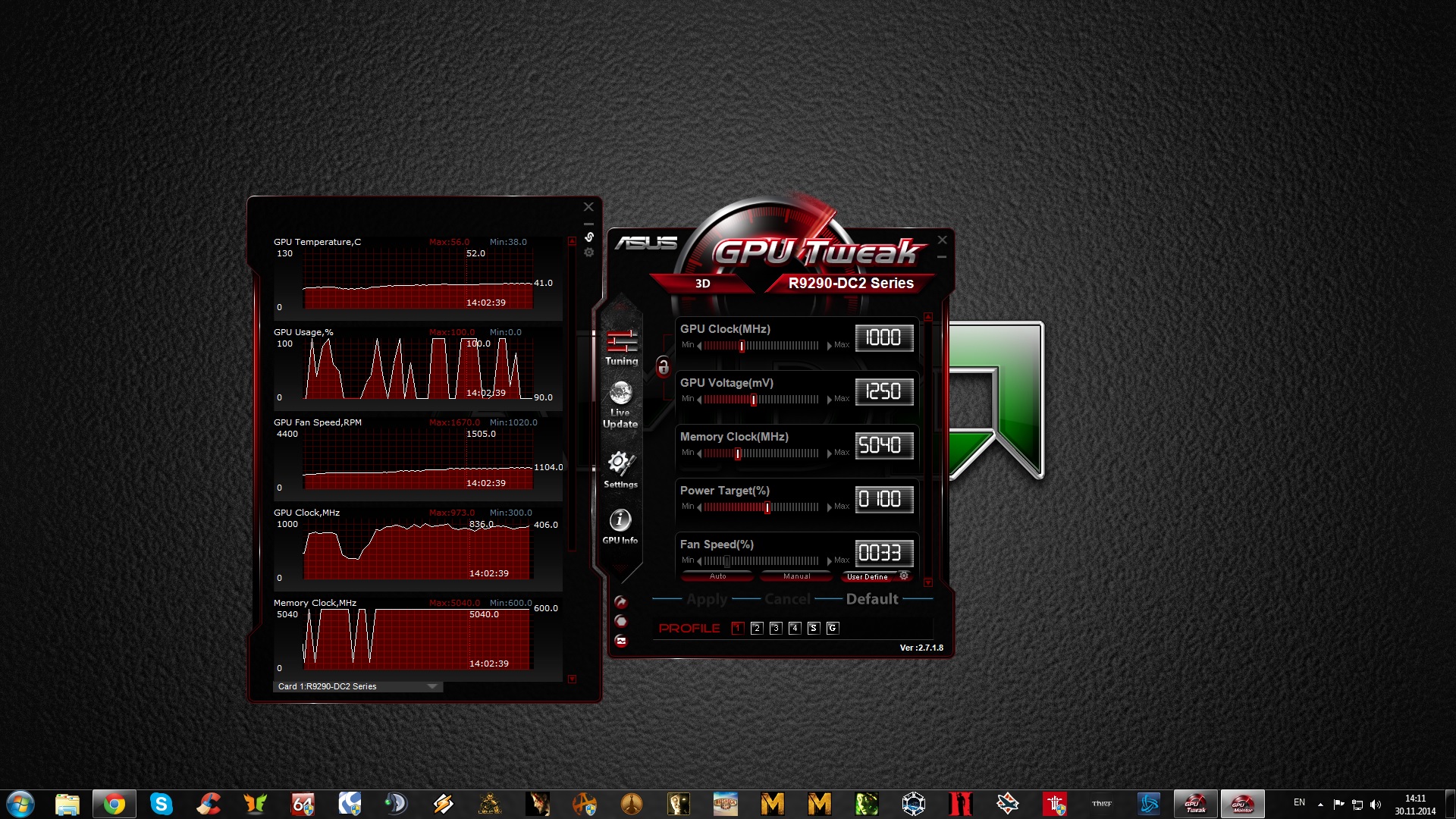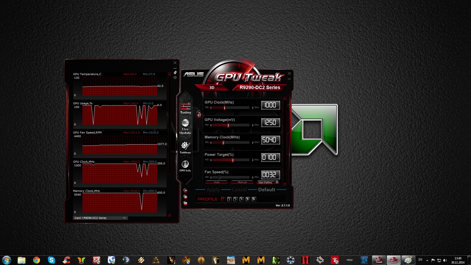 Подскажите плиз, до скольки поднимать напряжение на GPU ASUS R9 290X. Ставил максисмум в ASUS GPU Tweak 1410mv. Взяла 1200мгц дальше пока не пробовал. Стоит ли прошивать биос OCBIOS (PT3 без Vdroop) и использовать ASUS GPU Tweak с возможностью поднятия напряжения до 2.0v на ядро.