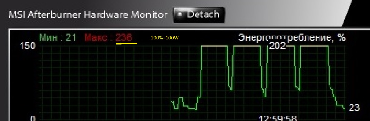Ну для твоей 660Ти сработало, потому что там был лимит софтовый до 180 Вт или сколько там - не помню, а выше физически 225 Вт ты никак не потребляешь на ней. Рива софт может мониторить хоть 300 Вт, но их там нету физически. Можешь замерять ваты, если попадется ватметр.