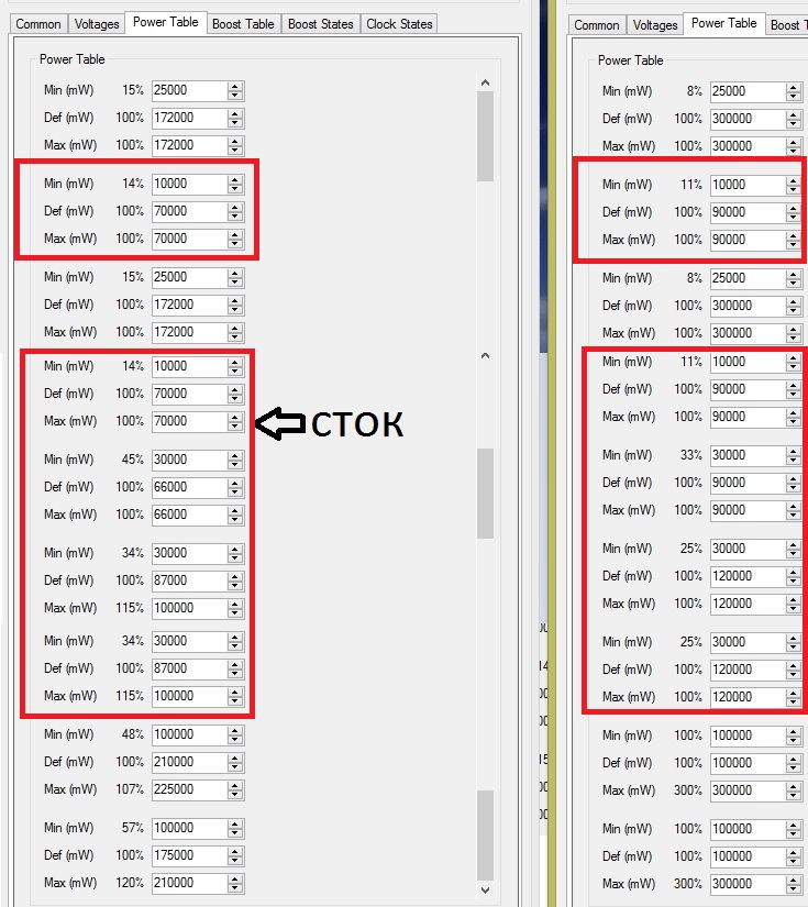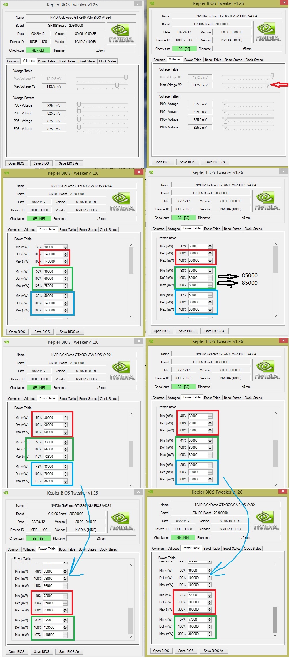 Ты внимательно открой биос на 170 Вт и смотри лимиты. Это к тому, что я менял...А почему 300 Вт ты поставил? А не 400? Выше 150 Вт не подается с БП и мамки. Кашу маслом не ипортишь - это ирония. То что ты там наменял это жуть...разберись сто стейтами сначала, а то ты для лоу3д и 2д тоже намутил.