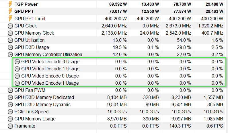 Если бы он не использовался, то там везде красовались бы нули (в т.ч. и в максимальных показателях, а там 22% как-никак). Да и в простое карта у меня жрёт сейчас 15-20 ватт, а не 70. Так что выпад мимо кассы.