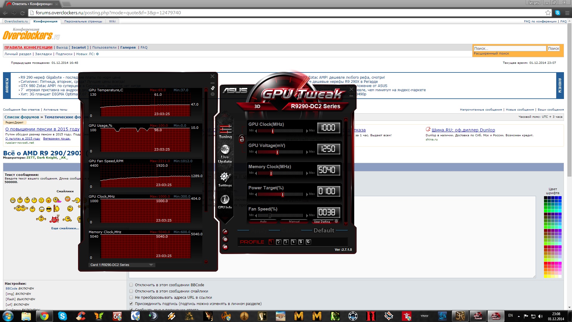 Товарищи, так учитывая мой график в asus gpu , ктонить ответит мне на вопрос? Это тротлинг?Бп достаточный, перегрева нет, или что? Или мб 8320@4.6 не может нагрузить 290 в 1920x1080?Или это нормальный график для этой карты? Все данные на 534 стр.