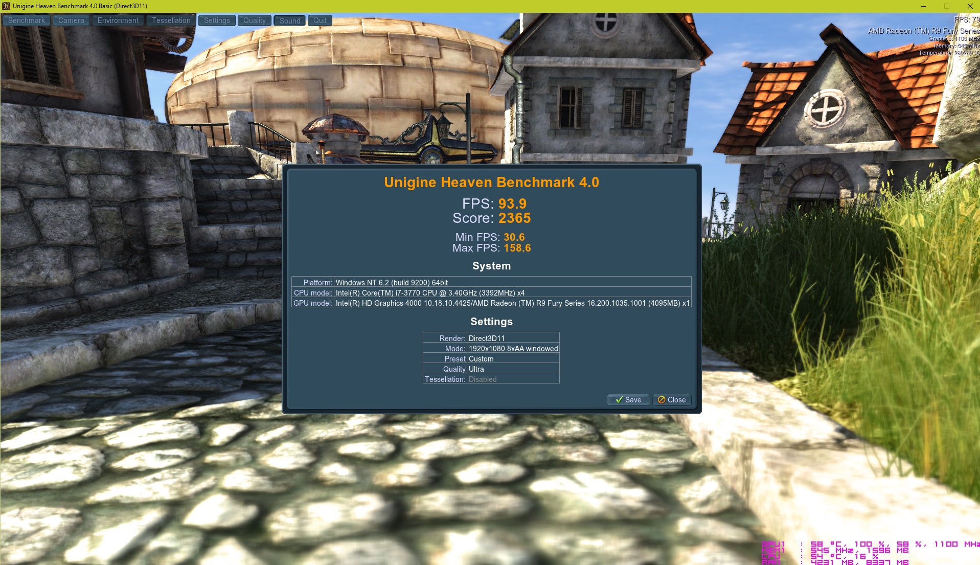 Прогнал как просили хэвен в фул хд, ультра, без тесселяции - 2365.