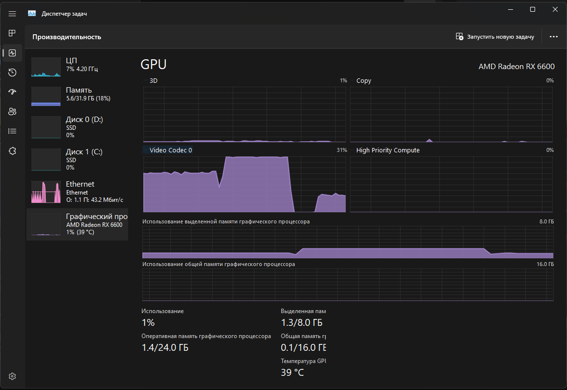 не знаю почему у меня дроп кадров идет. Но в целом похоже на правду. Как прикрутилось? Амд же в это не умеет (не умела?), у ваших товарищей вон было 0 загрузки видеодекодера.
